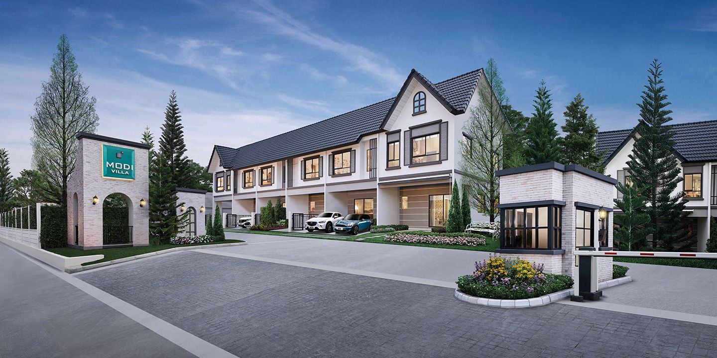 "โครงการ โมดิ วิลล่า ราชพฤกษ์-ติวานนท์ (MODI VILLA Ratchaphruek-Tiwanon) ดื่มด่ำกับสถาปัตยกรรมแบบตะวันตกอันงดงามและโปร่งสบายด้วยเพดานสูงถึง 2.85 ม. พร้อมโอบล้อมด้วยธรรมชาติสุดรื่นรมย์ More green space area รองรับทุกกิจกรรมความสุขของทุกคนในครอบครัว พร้อมคลับเฮาส์รูปแบบใหม่ โดดเด่นด้วยดีไซน์เรียบหรู พรั่งพร้อมสิ่งอำนวยความสะดวกครบครัน"