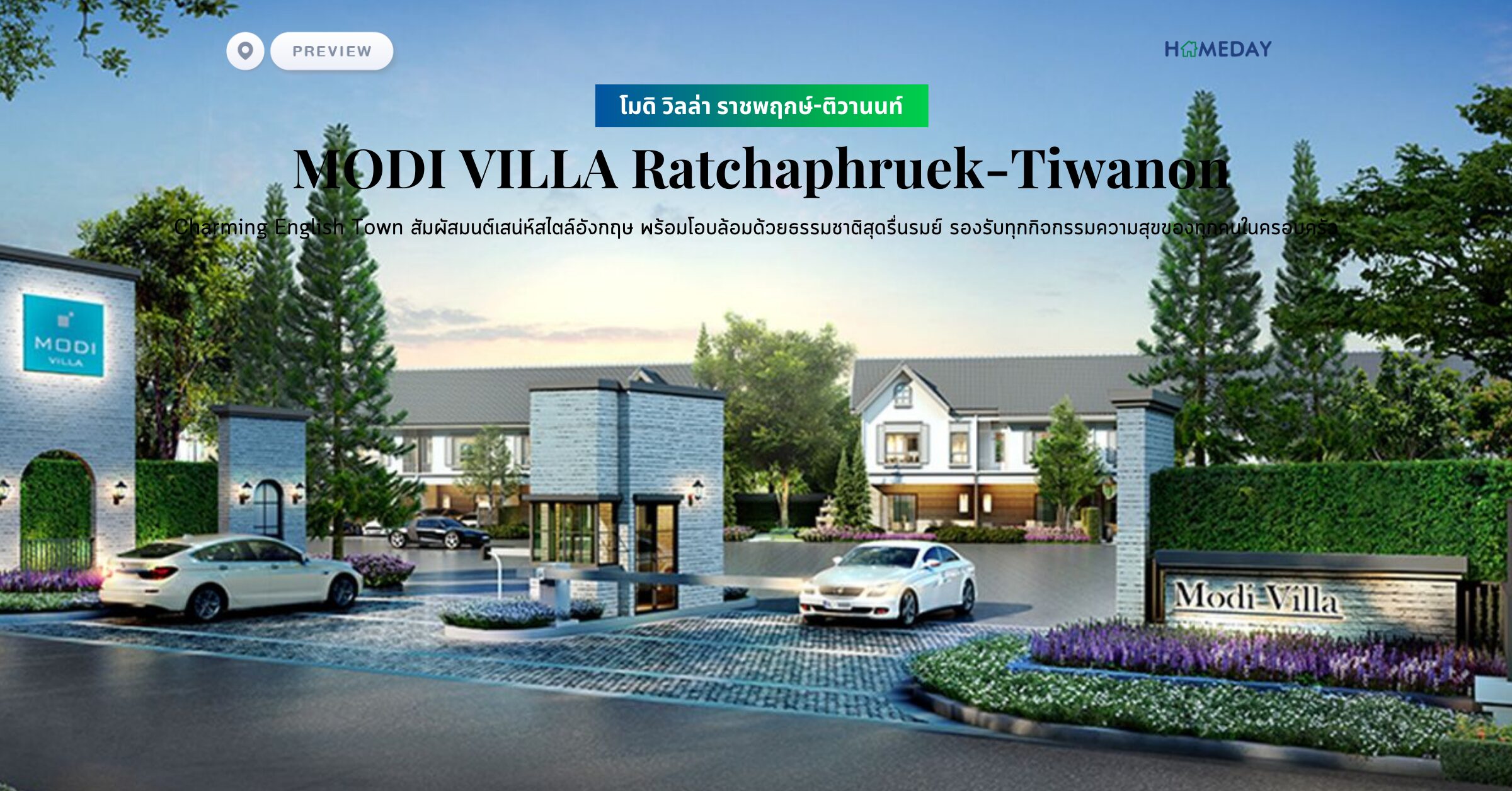 พรีวิว โมดิ วิลล่า ราชพฤกษ์-ติวานนท์ (MODI VILLA Ratchaphruek-Tiwanon) Charming English Town สัมผัสมนต์เสน่ห์สไตล์อังกฤษ พร้อมโอบล้อมด้วยธรรมชาติสุดรื่นรมย์ รองรับทุกกิจกรรมความสุขของทุกคนในครอบครัว - Homeday Space | HOMEDAY
