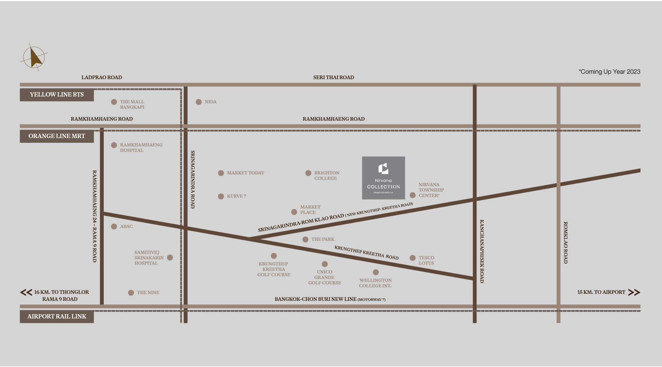 การเดินทาง ใกล้ทางพิเศษศรีรัชใกล้วงแหวนกาญจนาภิเษกใกล้มอเตอร์เวย์ กรุงเทพ-ชลบุรีใกล้แอร์พอร์ตลิงก์สถานีหัวหมากใกล้รถไฟฟ้าสายสีเหลือง สถานี ศรีกรีฑา โครงการ เนอวานา ดีฟายน์ ศรีนครินทร์-พระราม9 (Nirvana DEFINE Srinakarin-Rama 9) ทาวน์เฮาส์ใหม่ ที่โดดเด่นในเรื่องดีไซน์ที่แตกต่างจากทาวน์โฮมทั่วไป รวม