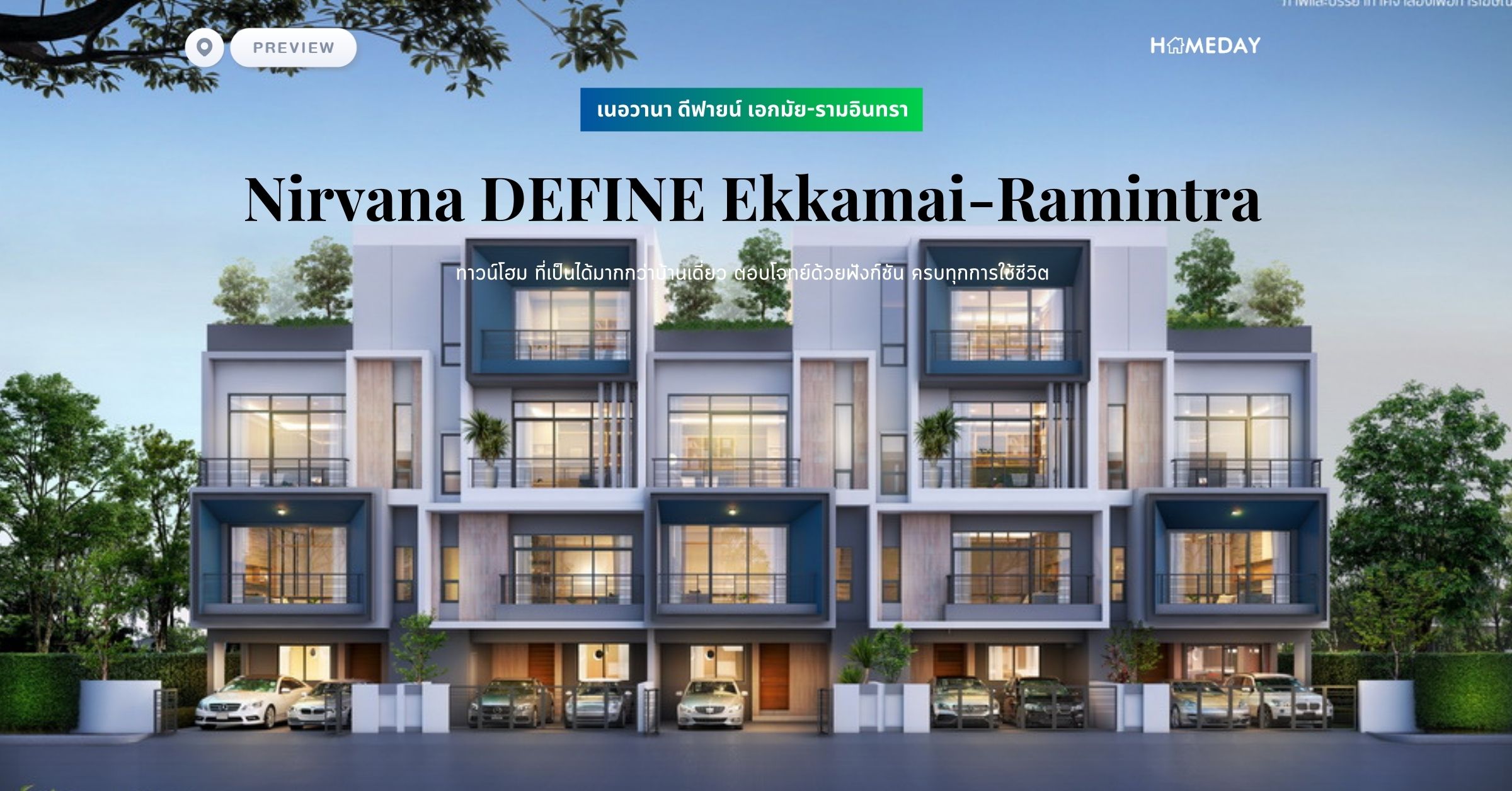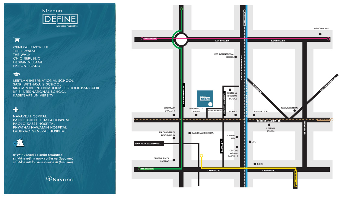 การเดินทาง ใกล้ทางพิเศษศรีรัชใกล้วงแหวนกาญจนาภิเษกใกล้มอเตอร์เวย์ กรุงเทพ-ชลบุรีใกล้แอร์พอร์ตลิงก์สถานีหัวหมากใกล้รถไฟฟ้าสายสีเหลือง สถานี ศรีกรีฑา โครงการ เนอวานา ดีฟายน์ ศรีนครินทร์-พระราม9 (Nirvana DEFINE Srinakarin-Rama 9) ทาวน์เฮาส์ใหม่ ที่โดดเด่นในเรื่องดีไซน์ที่แตกต่างจากทาวน์โฮมทั่วไป รวม