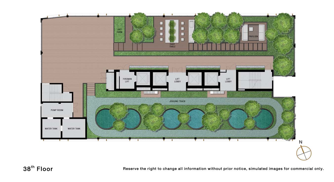 พื้นที่สวนส่วนกลาง ในแนวคิด "Creative Forest” ที่ชั้น G, 11 และ 38 ในอาคาร Y