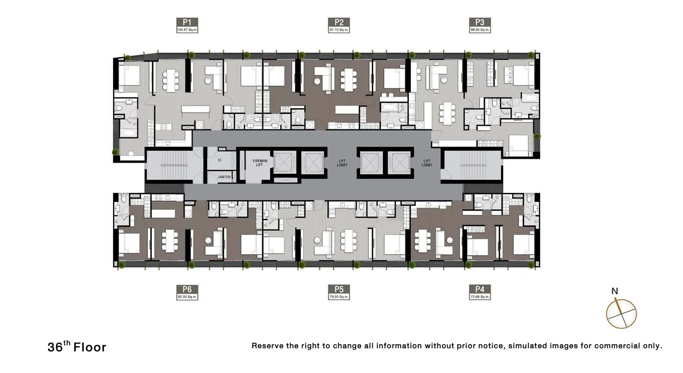 ลิฟท์โดยสาร 3 ตัว / ลิฟท์บริการ 1 ตัว