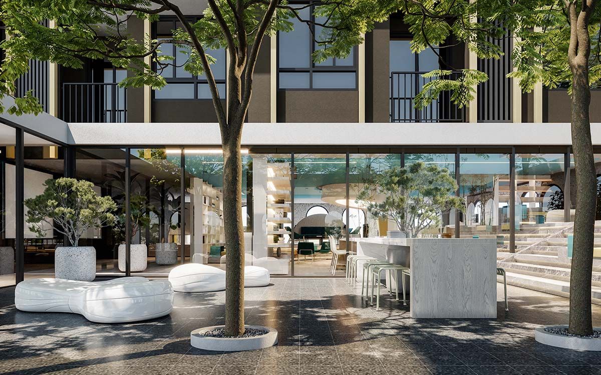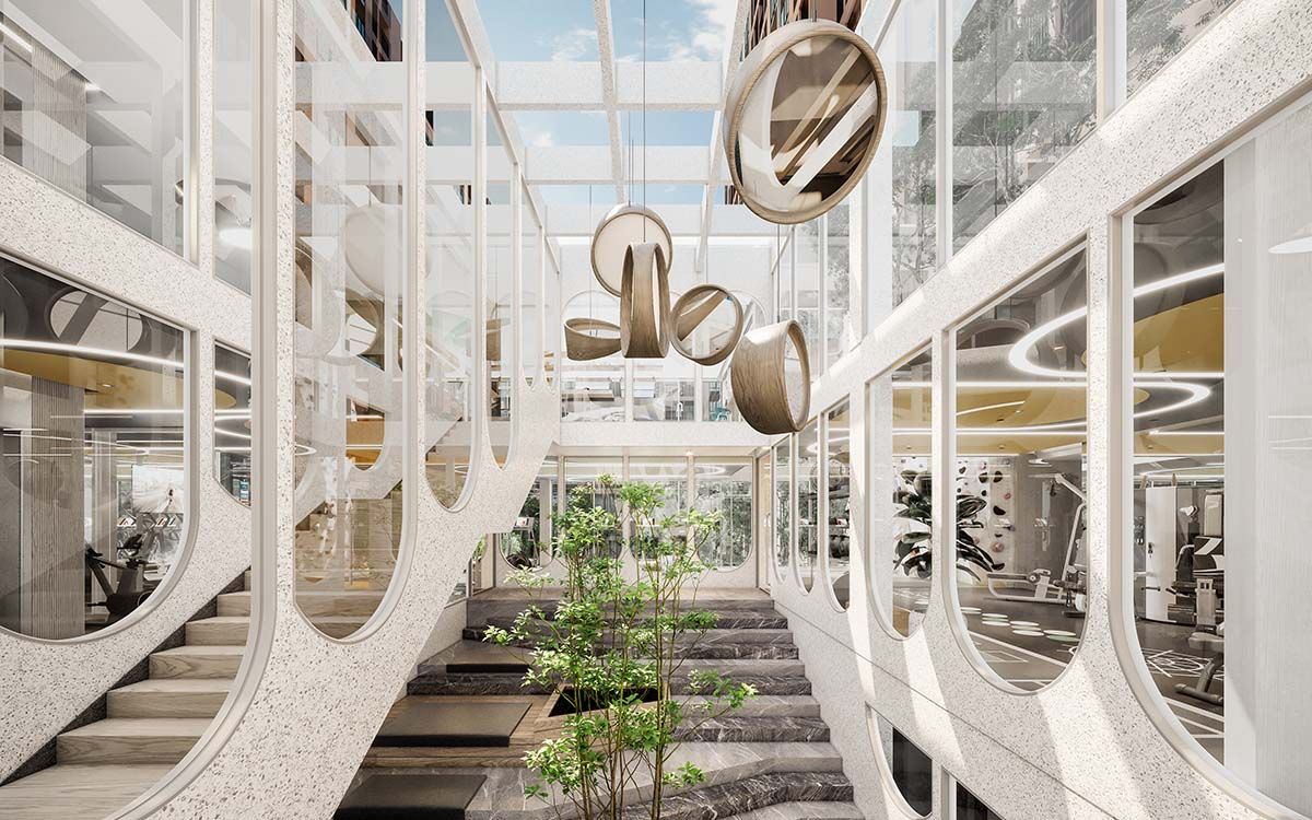 สวนส่วนกลางและลู่ปั่นจักรยานที่ชั้น G