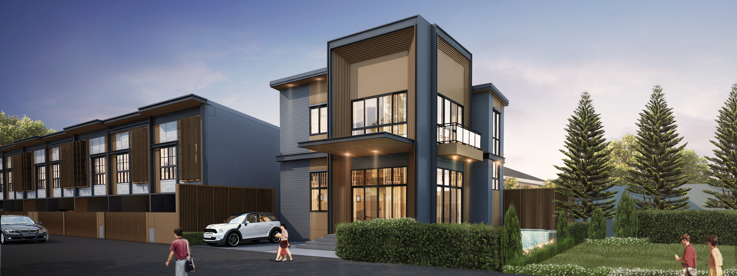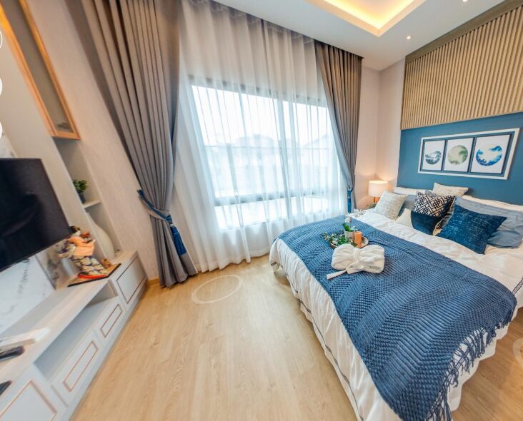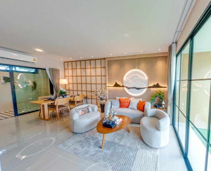 แบบบ้าน : MET 5 Plus พื้นที่ใช้สอย 150 ตร.ม. 4 ห้องนอน 4 ห้องน้ำ 1 ห้องนั่งเล่น 1 ห้องทานข้าว 1 ห้องครัว 2 ที่จอดรถDigital Townhome ควบคุมความปลอดภัยด้วยระบบ Smart Home Au