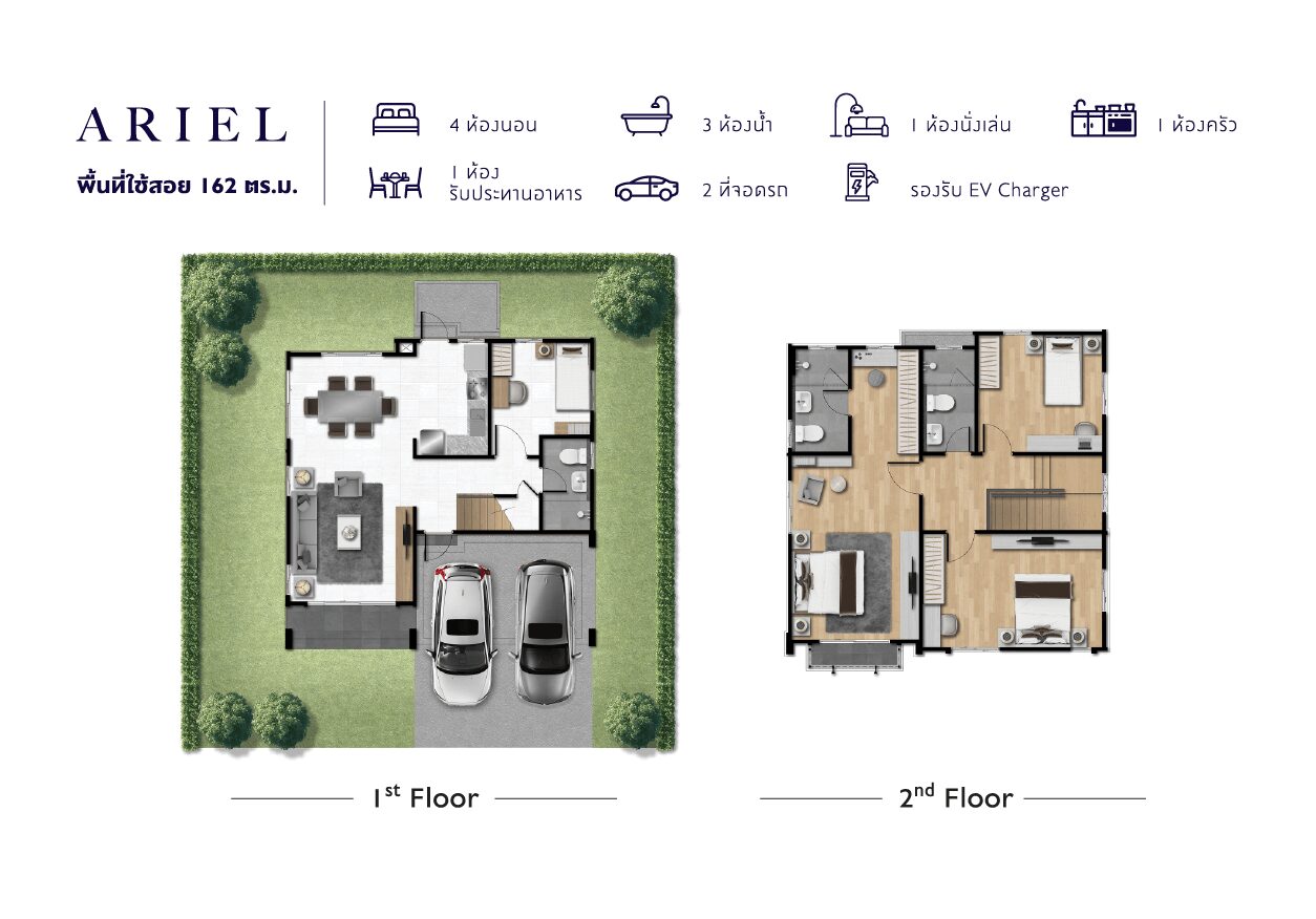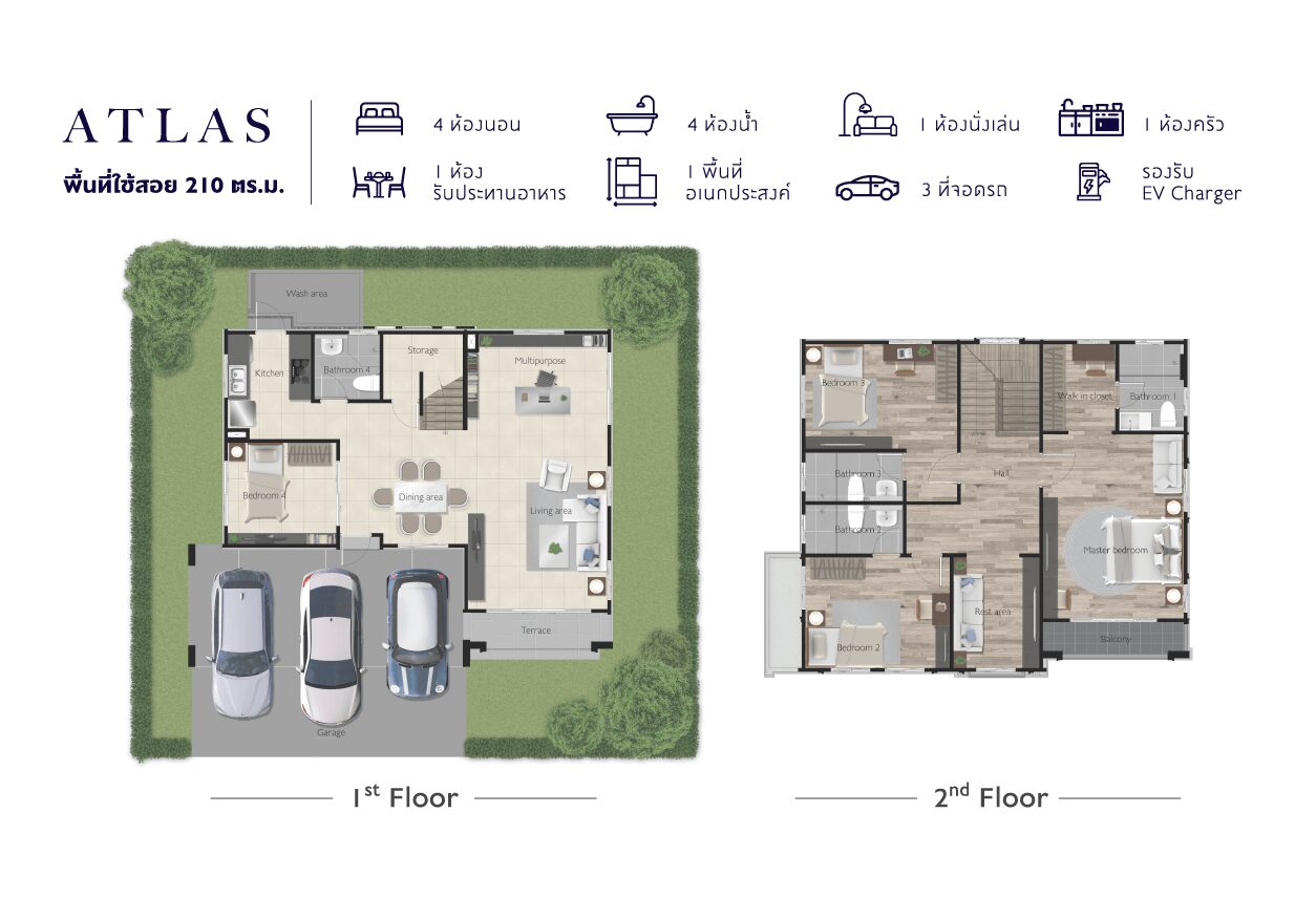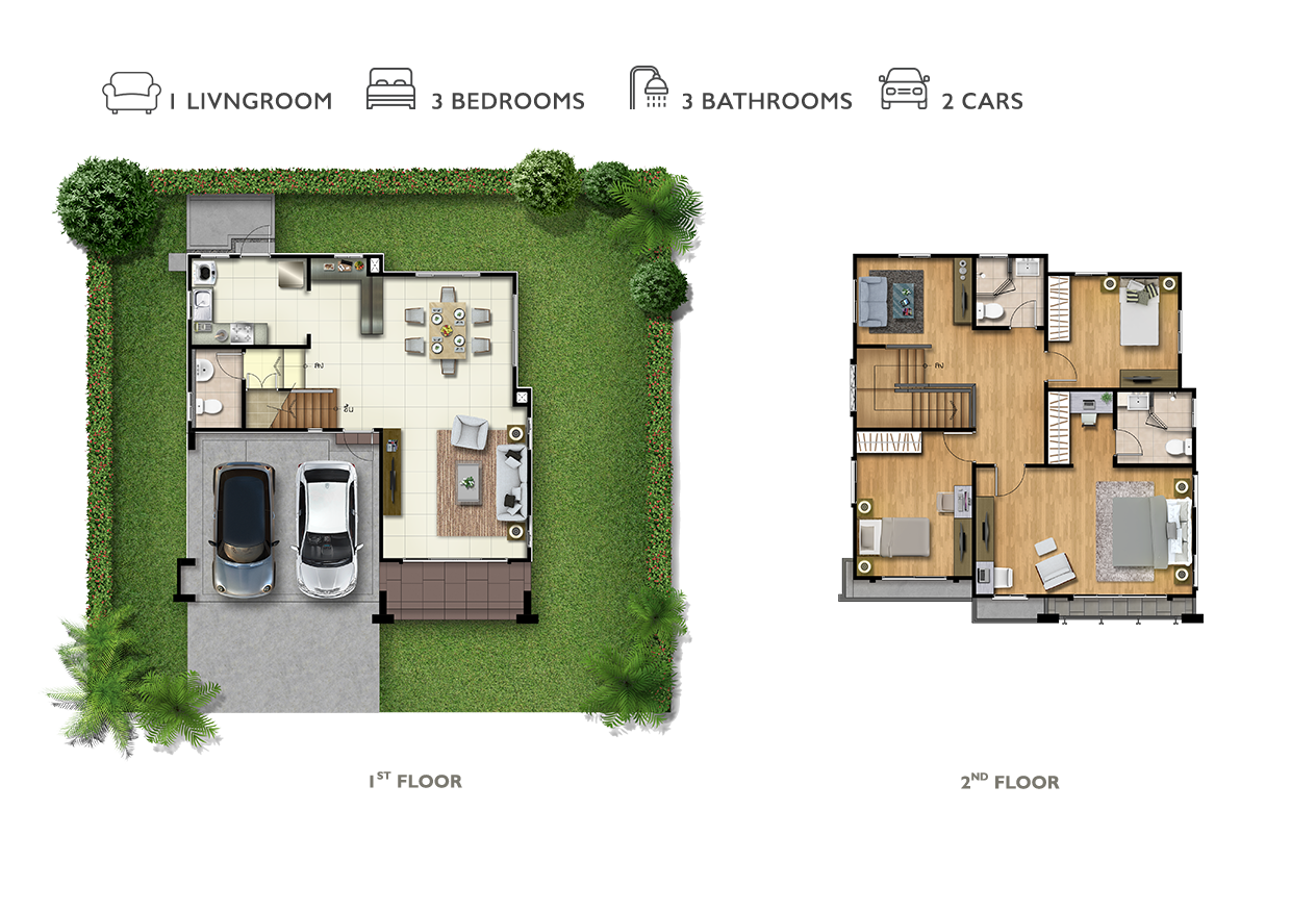 แบบบ้าน : ศุภลักขณา บ้านเดี่ยว 2 ชั้น พื้นที่ใช้สอย 150 ตร.ม. ขนาด 3 ห้องนอน 3 ห้องน้ำ พร้อมที่จอดรถ 2 คัน แบบบ้าน : ศุภฤทธิ์ บ้านเดี่ยว 2 ชั้น พื้นที่ใช้สอย 175 ตร.ม. 4 ห้องนอน 3 ห้องน้ำ 1 ส่วนพักผ่อน ที่จอดรถ 2 คัน