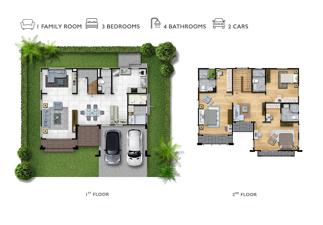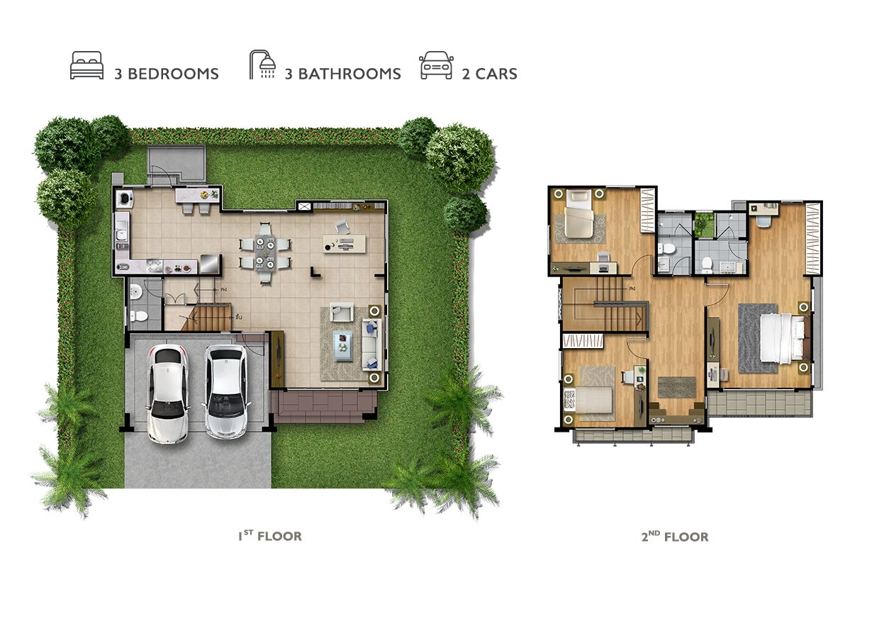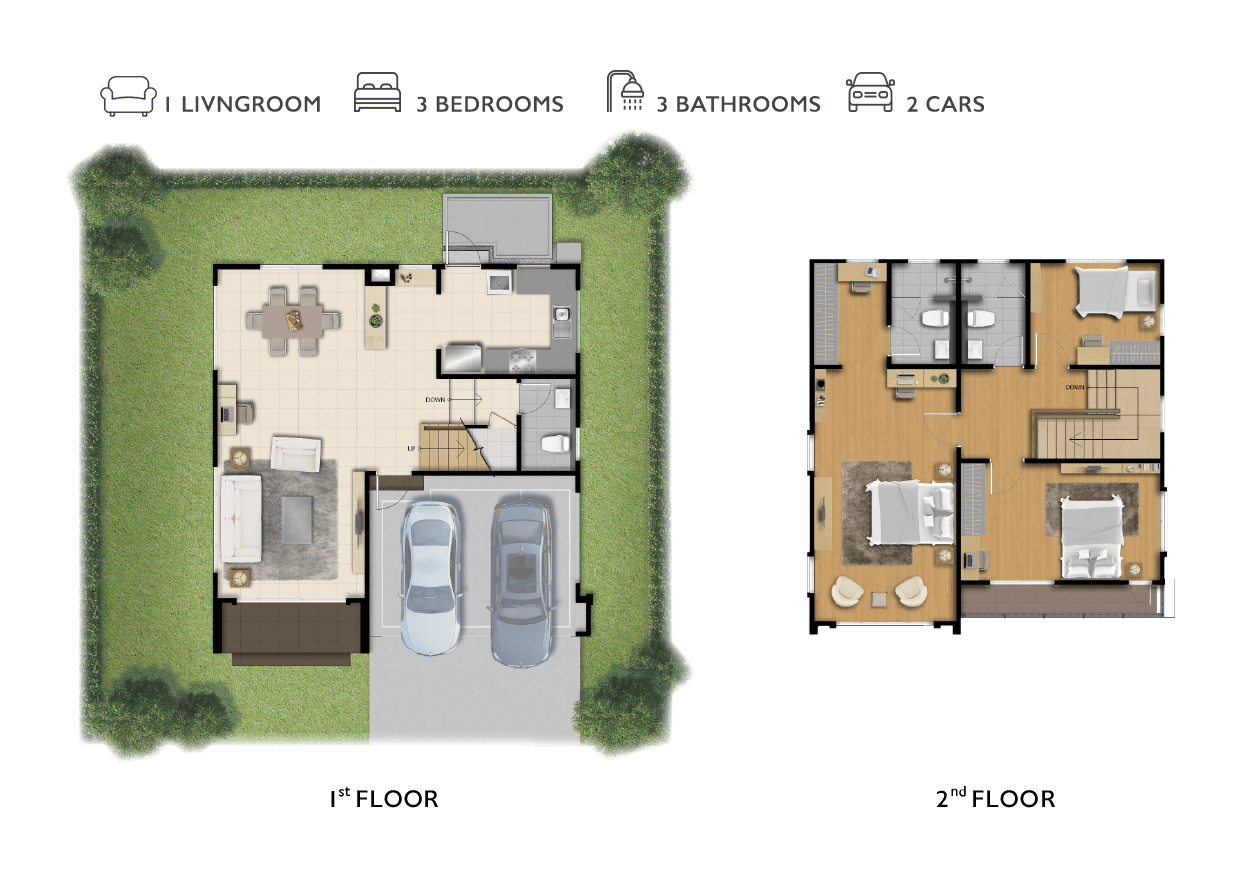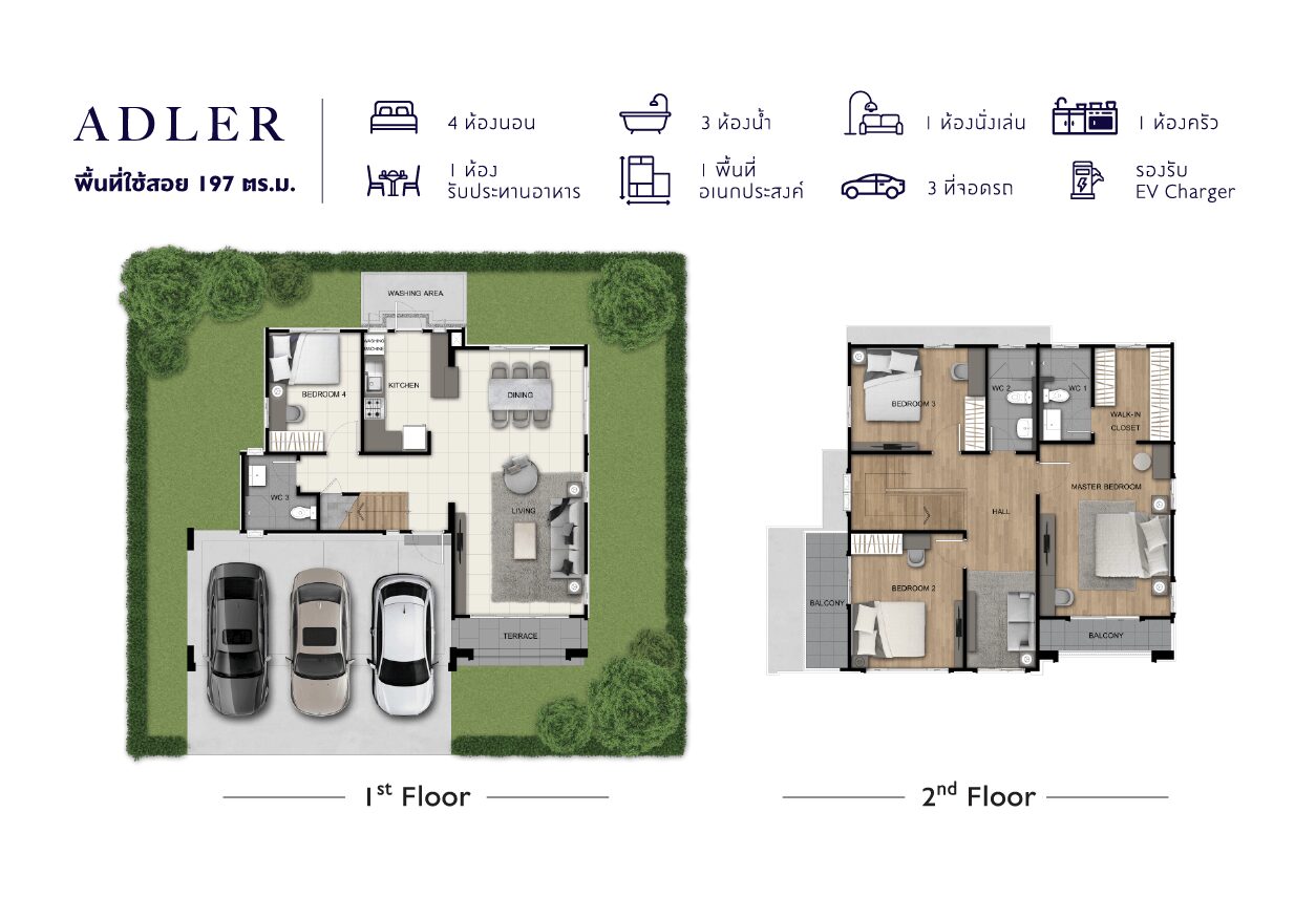 แบบบ้าน : ศุภลักขณา บ้านเดี่ยว 2 ชั้น พื้นที่ใช้สอย 150 ตร.ม. ขนาด 3 ห้องนอน 3 ห้องน้ำ พร้อมที่จอดรถ 2 คัน แบบบ้าน : ศุภฤทธิ์ บ้านเดี่ยว 2 ชั้น พื้นที่ใช้สอย 175 ตร.ม. 4 ห้องนอน 3 ห้องน้ำ 1 ส่วนพักผ่อน ที่จอดรถ 2 คัน
