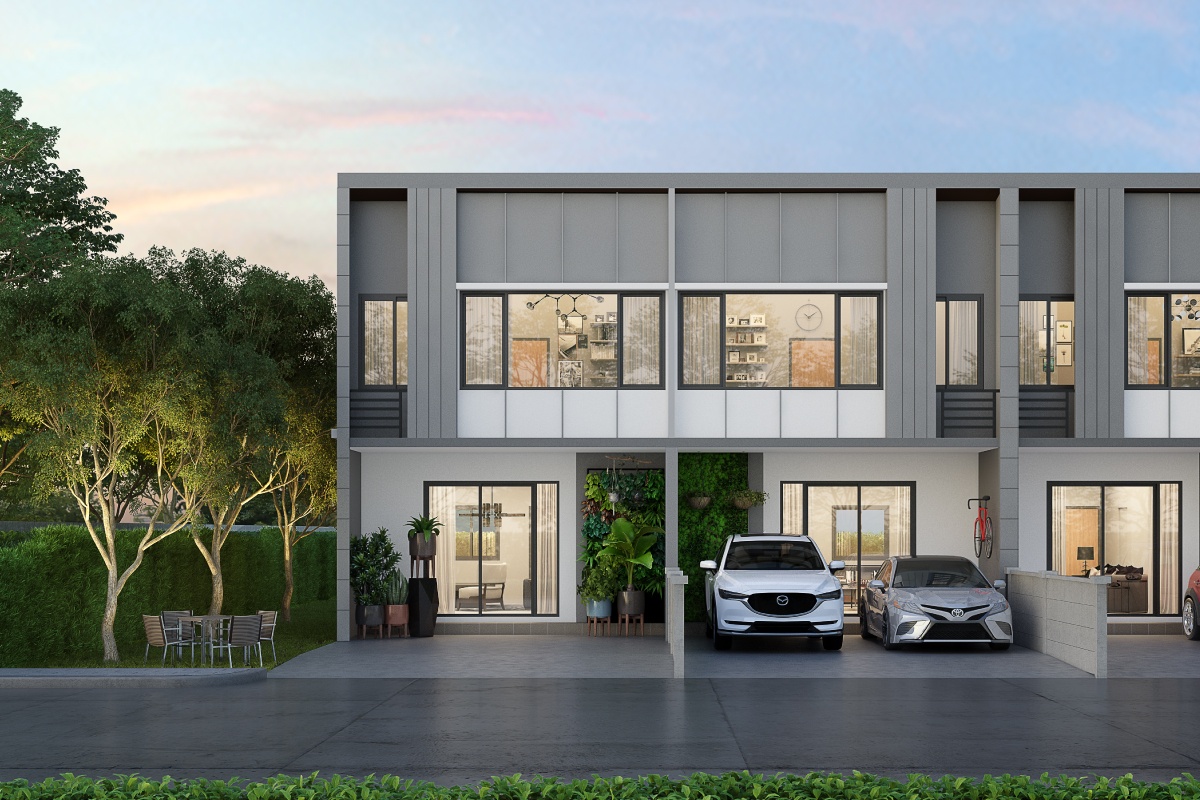 แบบบ้าน : LOFT 93 พื้นที่ใช้สอย 93 ตร.ม. หน้ากว้าง 5.2 เมตร 2 ห้องนอน 3 ห้องน้ำ ส่วนรับประทานอาหาร ห้องอเนกประสงค์ 1 ห้องรับแขก ที่จอดรถ 1 คัน แบบบ้าน : LOFT-133