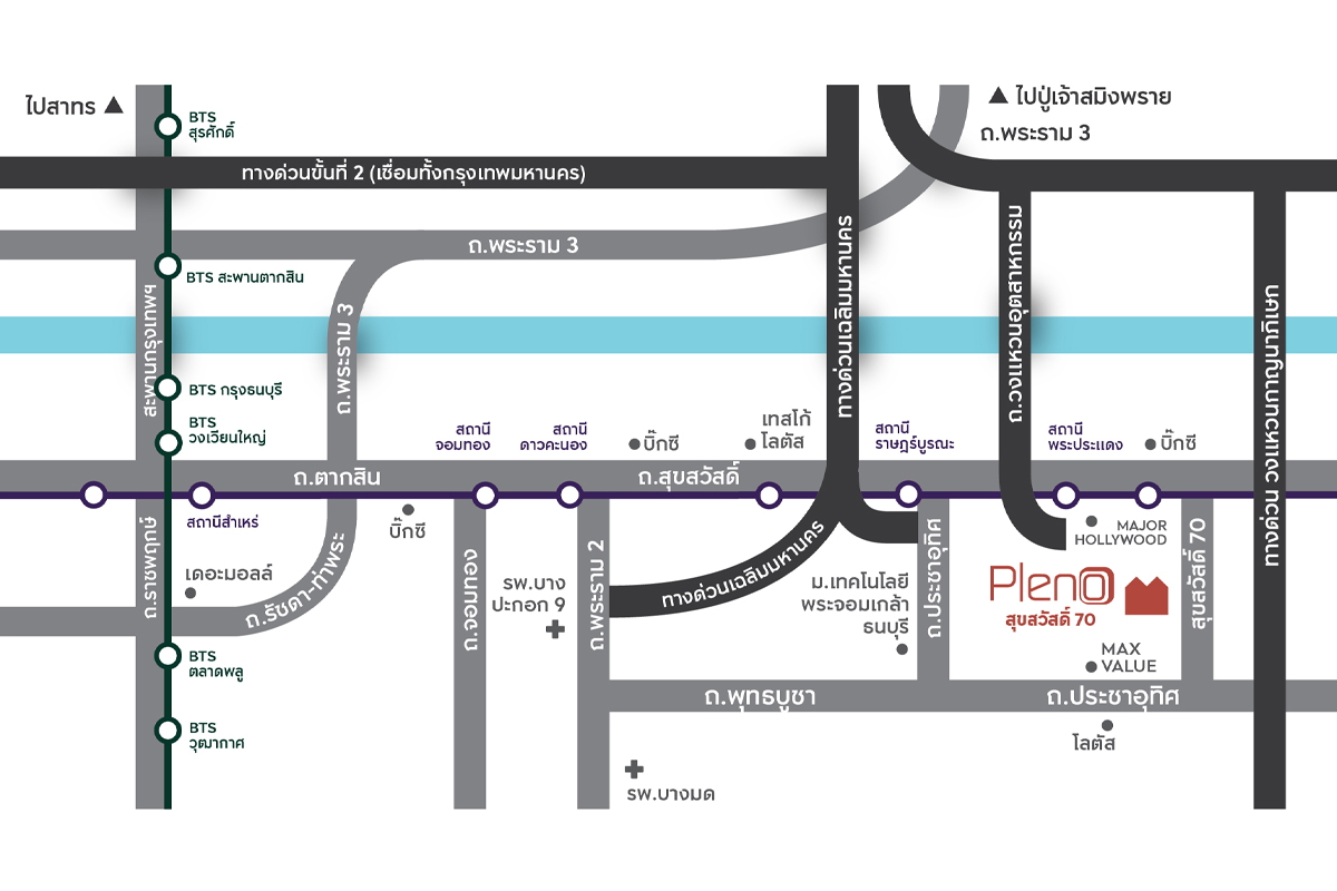 สถานศึกษารร.อัสสัมชัญพระราม2 5 กม.รร. รุ่งอรุณ พระราม 2 20 กม. ห้างสรรพสินค้าเซ็นทรัล พระราม 2 17 กม.เซนทรัล มหาชัย 14 กม.โลตัส พระราม 2 12 กม.บิ๊กซี พระราม 2 12 กม.พอร์โทชิโน่ 11 กม.
