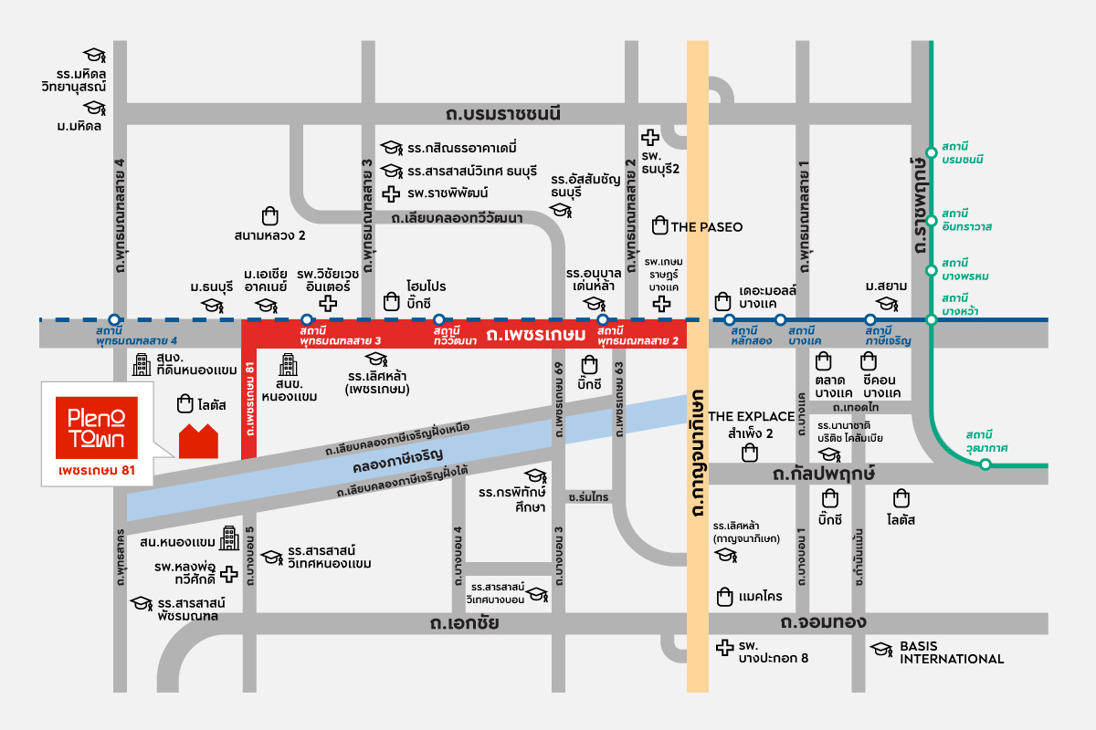 สถานศึกษาโรงเรียนวัฒนาวิทยาลัยมหาวิทยาลัยศรีนครินทรวิโรฒ (มศว.) ห้างสรรพสินค้าTerminal 21The EM Districtเซนทรัลพระราม 9 สถานพยาบาลรพ. จักษุรัตนิน รพ. ผิวหนัง อโศก รพ. บํารุงราษฎร์