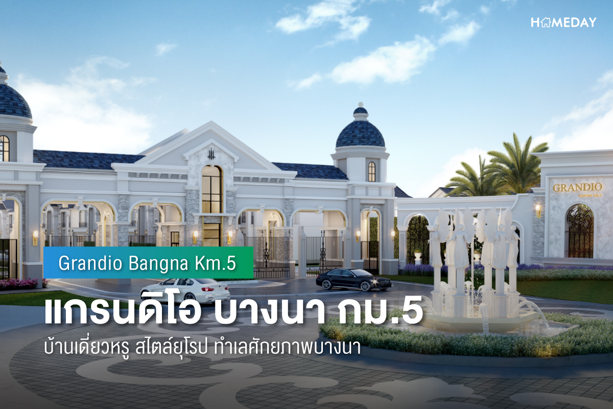 "แกรนดิโอ บางนา กม.5 (Grandio Bangna Km.5) บ้านหรู..หลัง MEGA บางนา จากศิลปะสู่สถาปัตยกรรม New Art Deco ที่มีความแตกต่าง และงดงามในแบบของตนเอง คงความ Classic ที่มีความสวยงามในทุกยุค ทุกสมัย และมีความเป็น Modern ที่ผสมผสานให้ดูมีความทันสมัยมากขึ้น ออกแบบให้มีพื้นที่ใช้สอยภายในให้คุ้มค่าที่สุด ที่สุดแห่งทำเลเข้าออกได้หลายเส้นทาง ไม่ว่าจะเป็นถนนบางนา ถนนศรีนครินทร์ ถนนหนามแดง ถนนเทพารักษ์ ถนนตําหรุ-บางพลี"