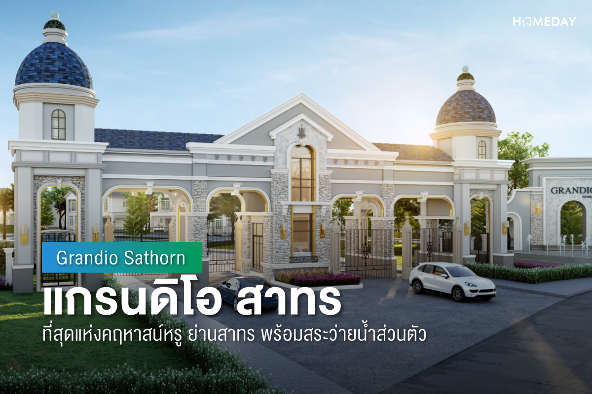 "แกรนดิโอ สาทร (Grandio Sathorn) บ้านเดี่ยวหรู..ทำเลสุดท้าย ใกล้สาทร ที่ใครๆ ก็ปรารถนา จากศิลปะสู่สถาปัตยกรรม New Art Deco ที่มีความแตกต่าง และงดงามในแบบของตนเอง คงความ Classic ที่มีความสวยงามในทุกยุค ทุกสมัย และมีความเป็น Modern ที่ผสมผสานให้ดูมีความทันสมัยมากขึ้น ออกแบบให้มีพื้นที่ใช้สอยภายในให้คุ้มค่าที่สุด"