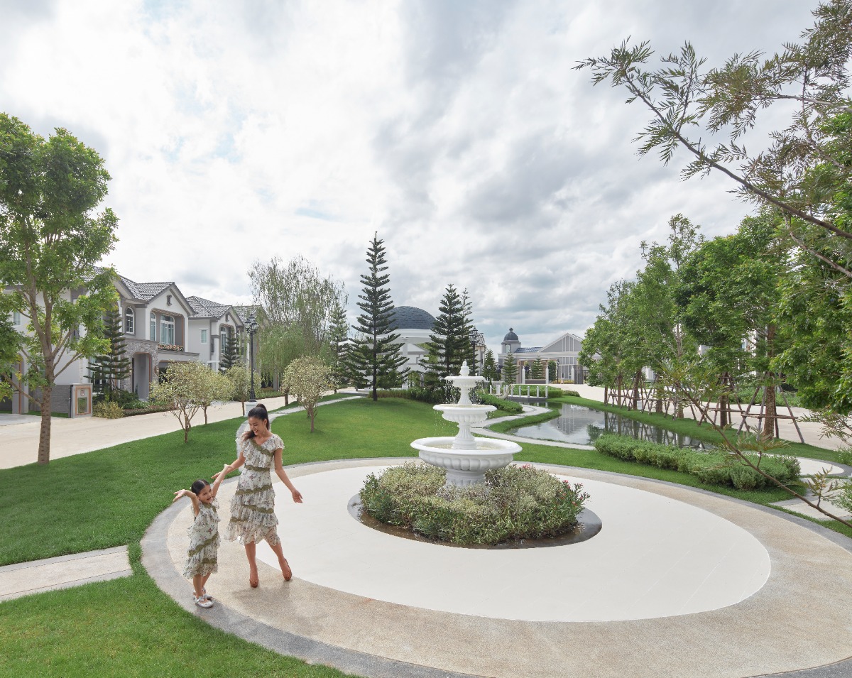 พื้นที่ส่วนกลาง ดีไซน์ความสุขให้ทุกครอบครัว เริ่มตั้งแต่ซุ้มประตูทางเข้าที่โอ่อ่าอลังการมีเอกลักษณ์ต้อนรับทุกการมาเยือน สู่บ้านสวยหรูสไตล์ยุโรป พร้อม Clubhouse สระว่ายน้ำ สวนสวยสไตล์อังกฤษที่ได้แรงบันดาลใจมาจาก Stourhead Gargens ประเทศอังกฤษ เพื่อความสมบูรณ์แบบของการใช้ชีวิตอย่างแท้จริง