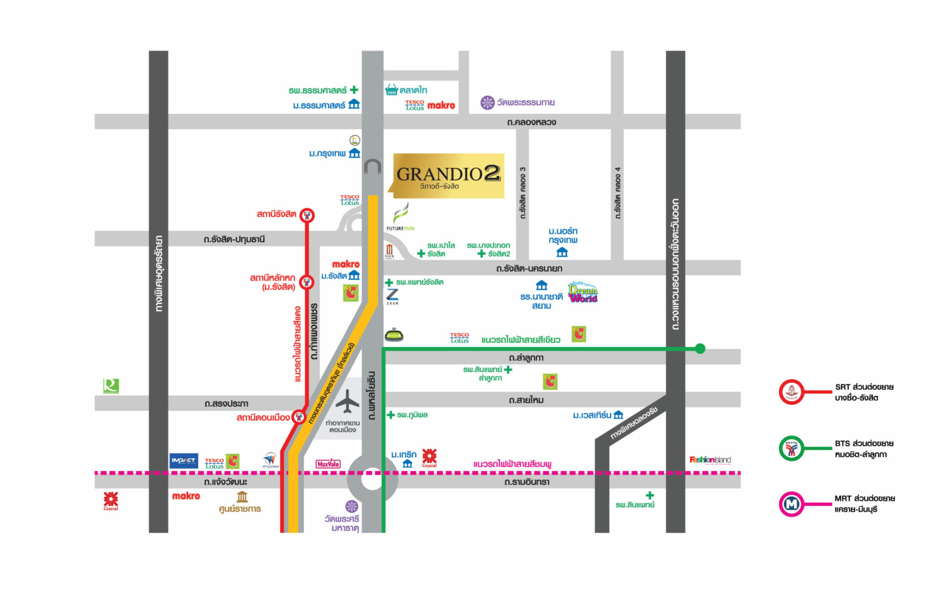 • รถไฟฟ้าสายสีแดง บางซื่อ-รังสิต สถานีรังสิต 4.3 กิโลเมตร