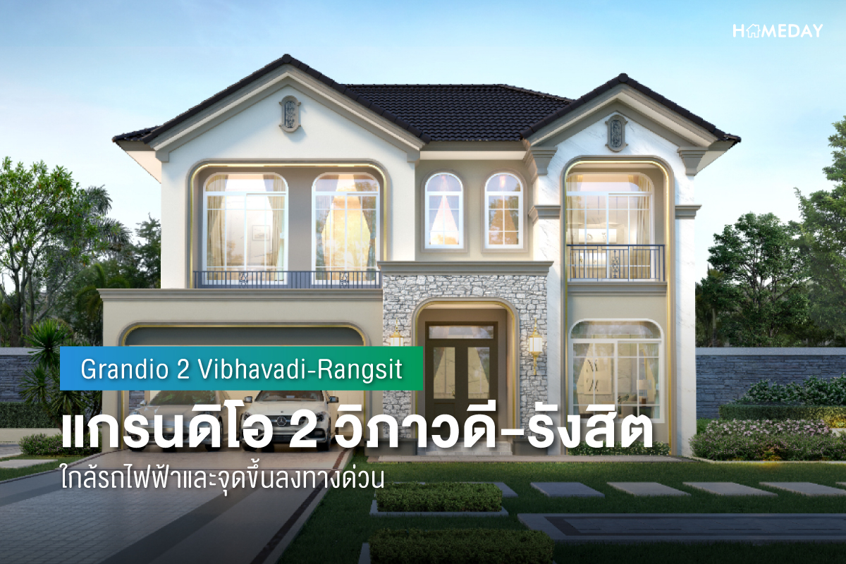 "แกรนดิโอ 2 วิภาวดี-รังสิต (Grandio 2 Vibhavadi-Rangsit) พบบ้านหรู นวัตกรรมใหม่ จากศิลปะสู่สถาปัตยกรรม New Art Deco ที่มีความแตกต่าง และงดงามในแบบของตนเอง คงความ Classic ที่มีความสวยงามในทุกยุค ทุกสมัย และมีความเป็น Modern ที่ผสมผสานให้ดูมีความทันสมัยมากขึ้น ออกแบบให้มีพื้นที่ใช้สอยภายในให้คุ้มค่า ที่สุดแห่งทำเลเพียง 3 นาทีถึงโทลล์เวย์ ติดถนนวิภาวดี เชื่อมสู่ทำเลเมือง วิภาวดีและดอนเมือง"