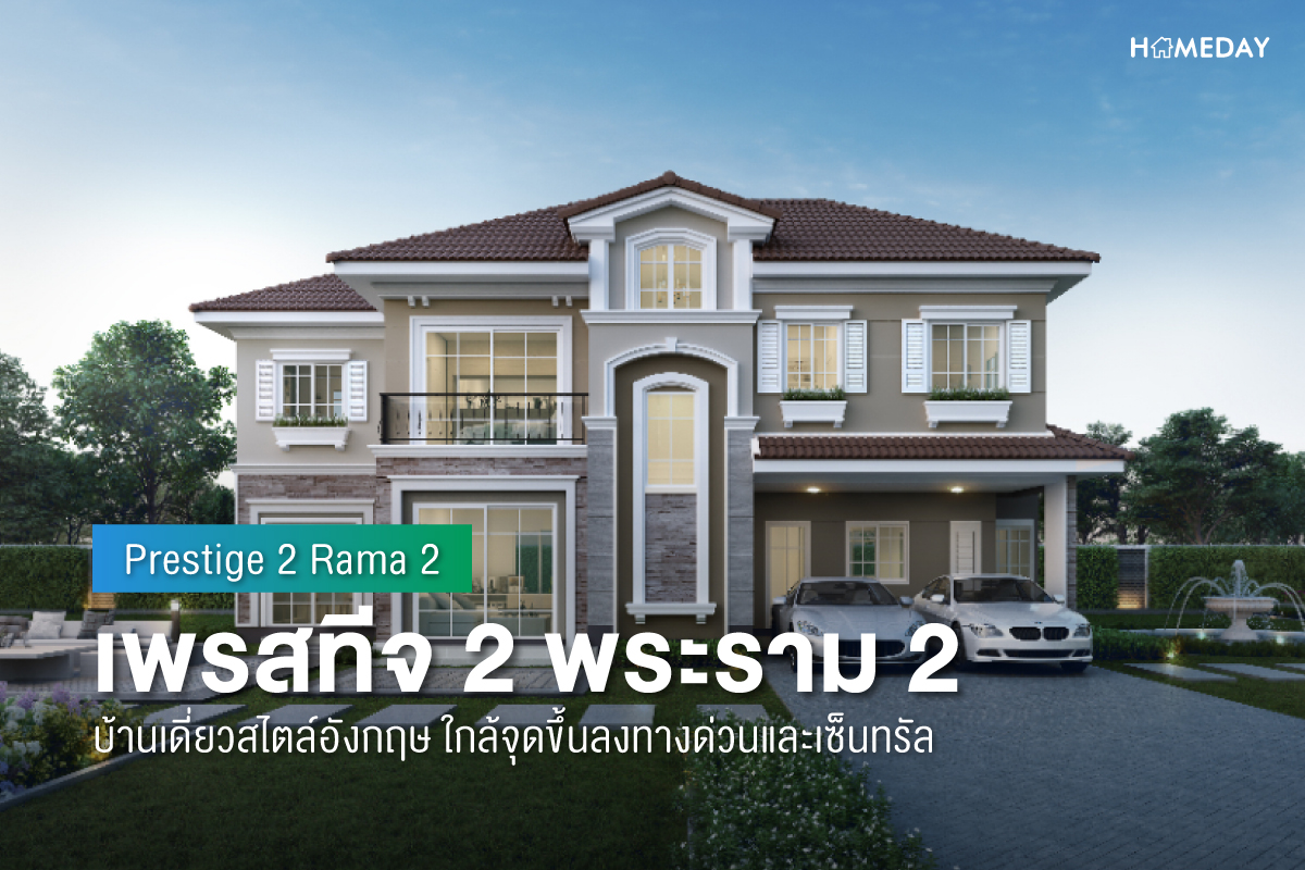 "เพรสทีจ 2 พระราม 2 (Prestige 2 Rama 2) สวย GOOD DESIGN ด้วยกลิ่นอายสถาปัตยกรรมอังกฤษร่วมสมัย ให้ความโอ่อ่าภูมิฐาน หิน บัวประดับ ปูนปั้น เหล็กดัดแนวระเบียงลวดลายพิเศษ ช่วยเพิ่มความหรูหรา มาตรฐานวัสดุชั้นนำ กระเบื้องห้องน้ำดีไซน์พิเศษ ประตู หน้าต่าง UPVC โคมไฟ Downlight ทั้งหลัง ฝ้าเพดานสูง 2.7 เมตร"
