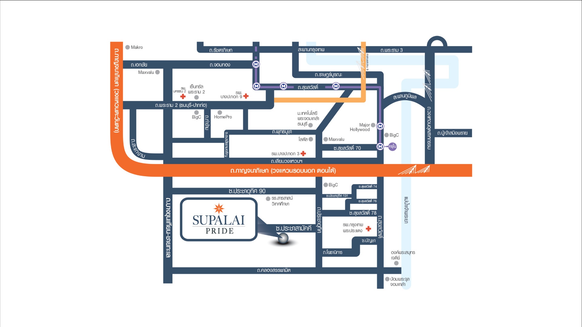 สถานศึกษาโรงเรียนสารสาสน์วิเทศราชพฤกษ์ ห้างสรรพสินค้าบิ๊กซี ปทุมธานีแม็คโคร ปทุมธานีโลตัส ปทุมธานีโรบินสัน ศรีสมาน สถานพยาบาลโรงพยาบาลปากเกร็ด 2โรงพยาบาลปทุมธานี