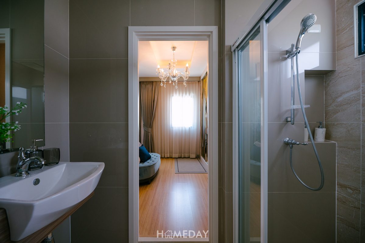 ห้องน้ำชั้น 2 มีทั้งหมด 2 ห้องด้วยกัน ห้องแรกจะอยู่ในห้องนอนใหญ่ ส่วนอีกห้องจะอยู่ด้านนอกเพื่อให้ผู้ที่อยู่อาศัยในห้องนอนรองสามารถใช้งานได้สะดวกค่ะ