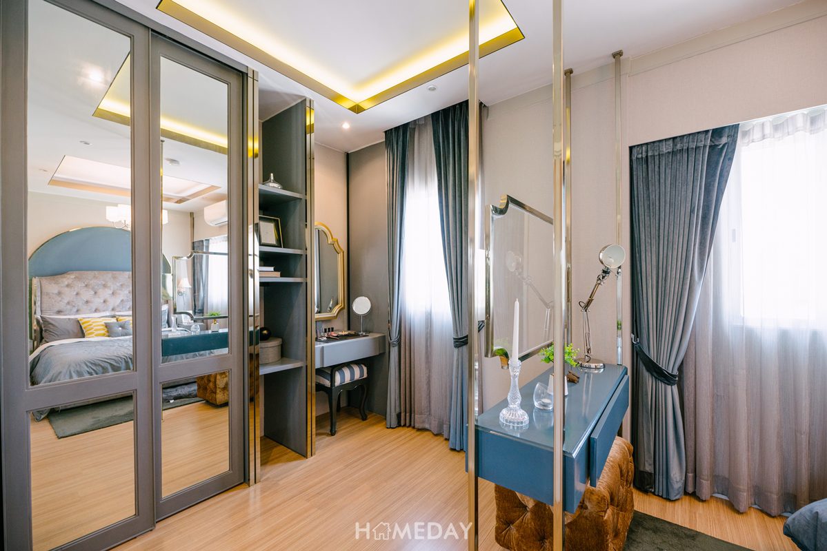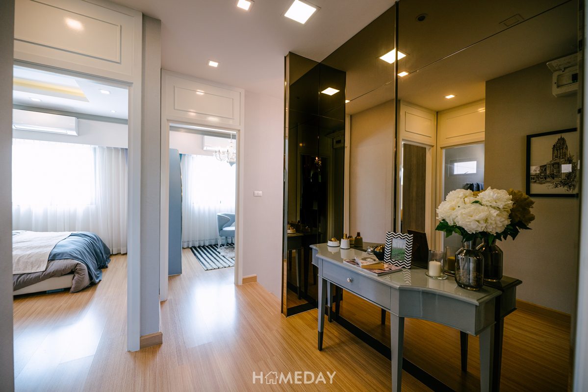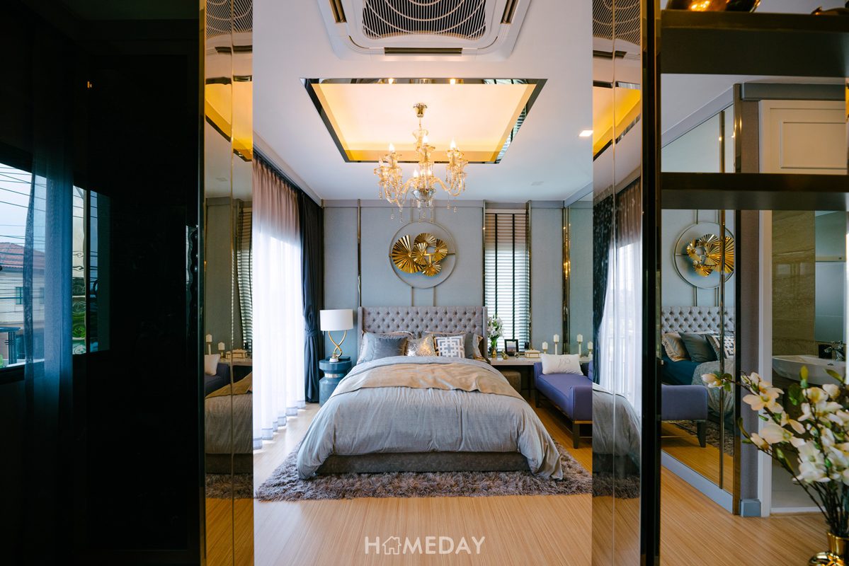 เริ่มกันที่ห้องนอนใหญ่ของบ้าน มีขนาดใหญ่ ให้ความรู้สึกไม่อึดอัด และช่องแสงโดยรอบห้องที่ทำให้รู้สึกโปร่ง โซนแต่งตัวเราสามารถวางโต๊ะเครื่องแป้ง และตู้เสื้อผ้าขนาดใหญ่ได้