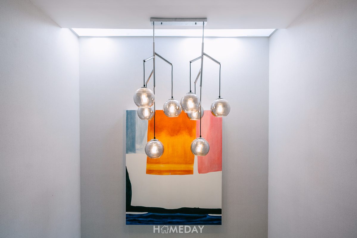 เข้ามาภายในบ้านส่วนแรกเจอกับพื้นที่ห้องนั่งเล่นหรือห้องรับแขก สิ่งแรกที่สัมผัสได้เลยคือความกว้าง โปร่งโล่งของตัวบ้าน ด้วยความสูงจากพื้นถึงฝ้าเพดาน 2.7 เมตร และประตูหน้าบ้านขนาดใหญ่ช่วยเปิดรับให้แสงธรรมชาติจากภายนอกเข้ามาด้านในได้มาก ถัดจากมุมรับแขกจะมีพื้นที่อเนกประสงค์สำหรับวางโต๊ะทำงานหรือตู้เก็บของก็ได้ ต่อมาจะเป็นจุดที่สำหรับวางโต๊ะรับประทานอาหารสามารถรองรับได้ถึง 4 – 6 ที่นั่งเลยค่ะ