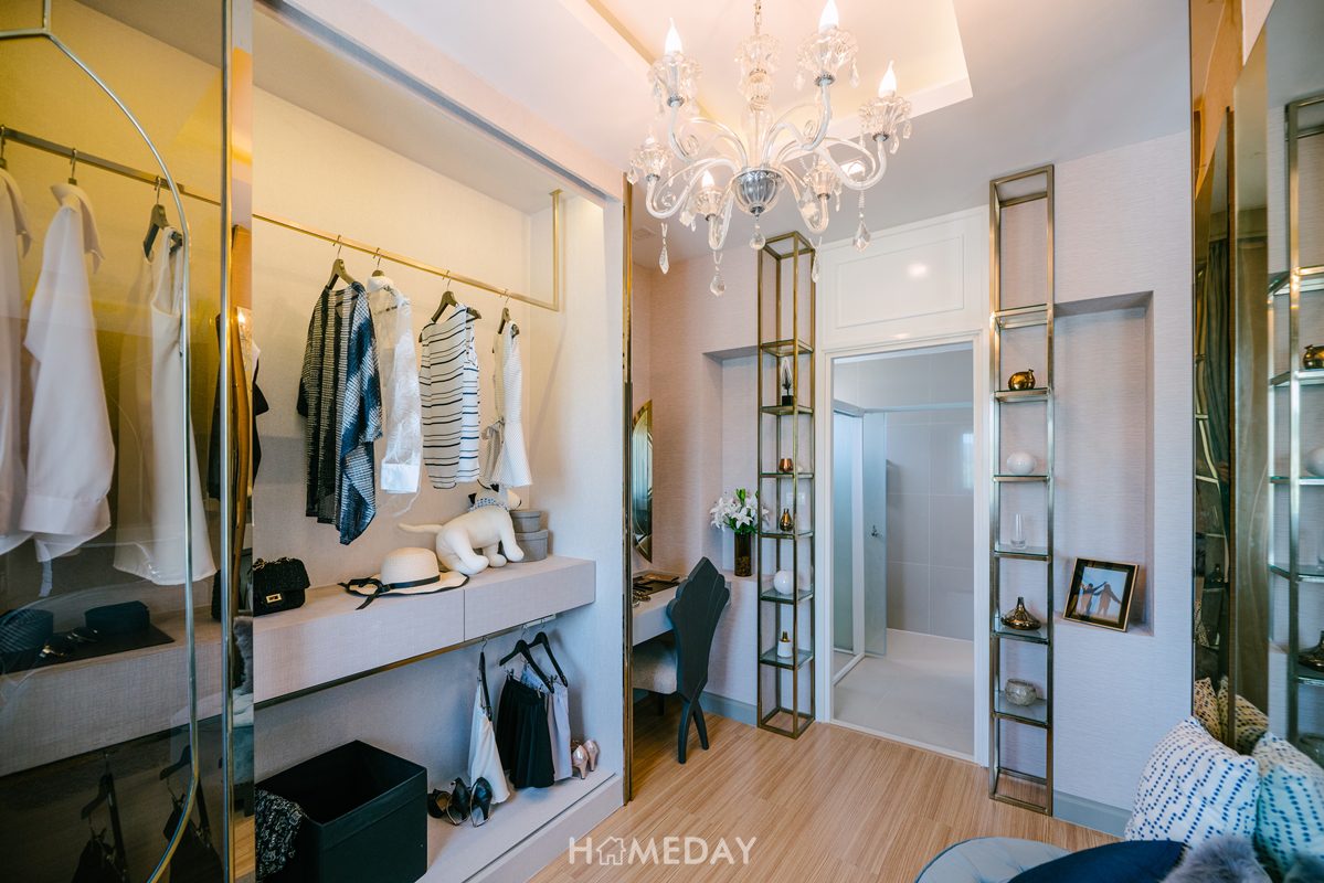 มาที่ห้องนอนใหญ่ (Master Bedroom) กันค่ะ ภายในห้องกว้างขวาง ให้ความรู้สึกโปร่ง โล่ง สบาย สามารถวางเตียงขนาด 5-6 ฟุต ถัดมาจะเป็นส่วนของ Walk in closet มุมแต่งตัวสวยๆที่คุณผู้หญิงต้องชอบแน่นอนค่ะ