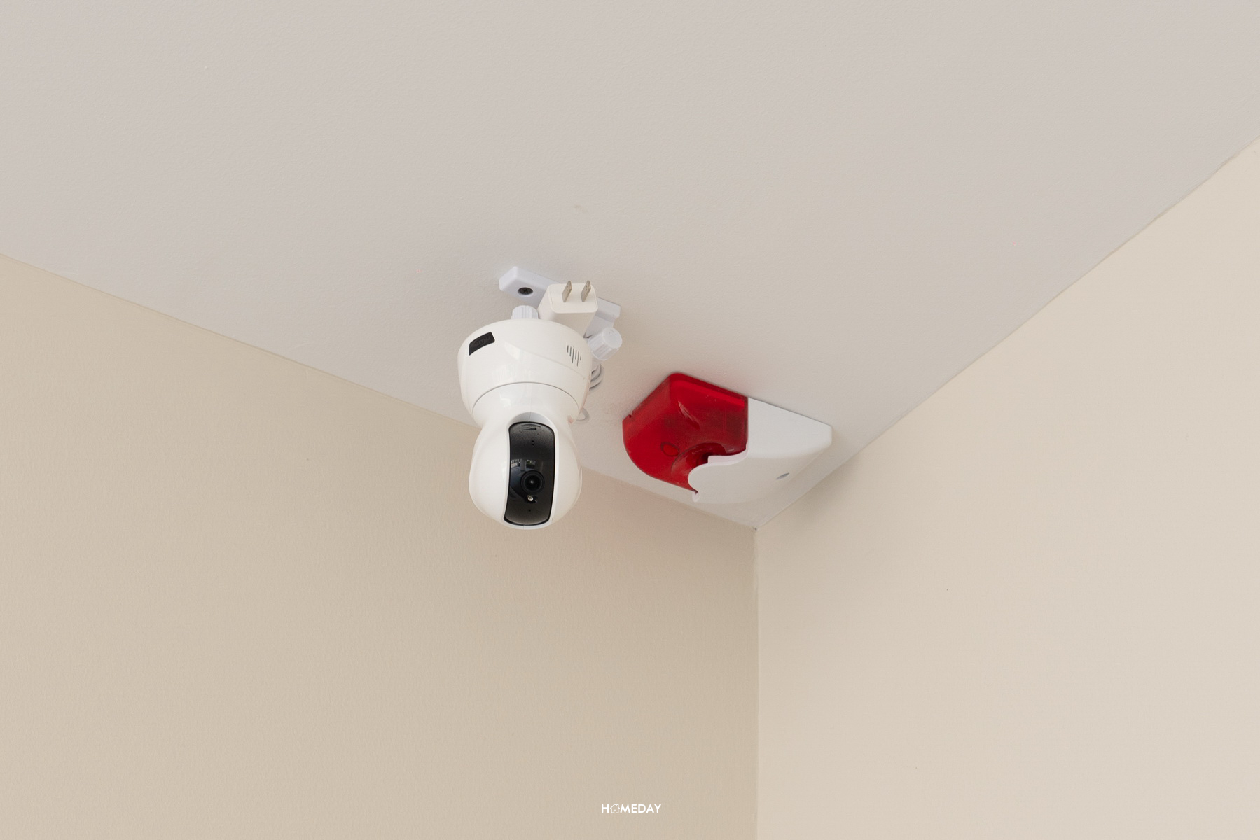 มี Siren และกล้อง IP Camera จุดที่ 1 ที่ตรวจจับความเคลื่อนไหวบริเวณหน้าบ้านตรงโรงจอดรถ