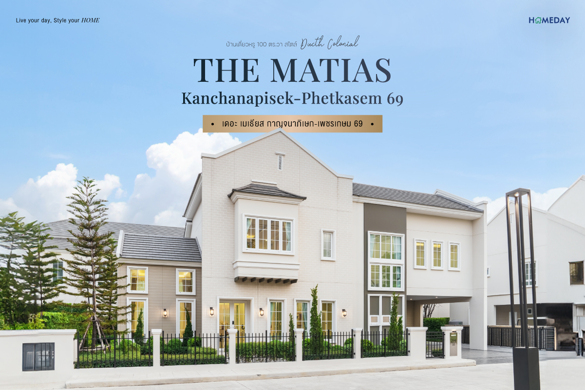"โครงการ เดอะ เมเธียส กาญจนาภิเษก-เพชรเกษม 69 (THE MATIAS Kanchanapisek-Phetkasem 69) “Your Treasured Moment Happening” สัมผัสทุกช่วงเวลาที่มีค่ากับบ้านเดี่ยวหรู Dutch Colonial Style บรรยากาศสไตล์ตะวันตก กลิ่นอายสถาปัตยกรรมยุโรปที่มีความเป็นเอกลักษณ์เฉพาะตัว สะท้อนรูปแบบการใช้ชีวิตที่แตกต่าง ครบทุกฟังก์ชัน ตอบโจทย์ครอบครัวทุก Generation สังคมส่วนตัวเพียง 28 ครอบครัวเท่านั้น"