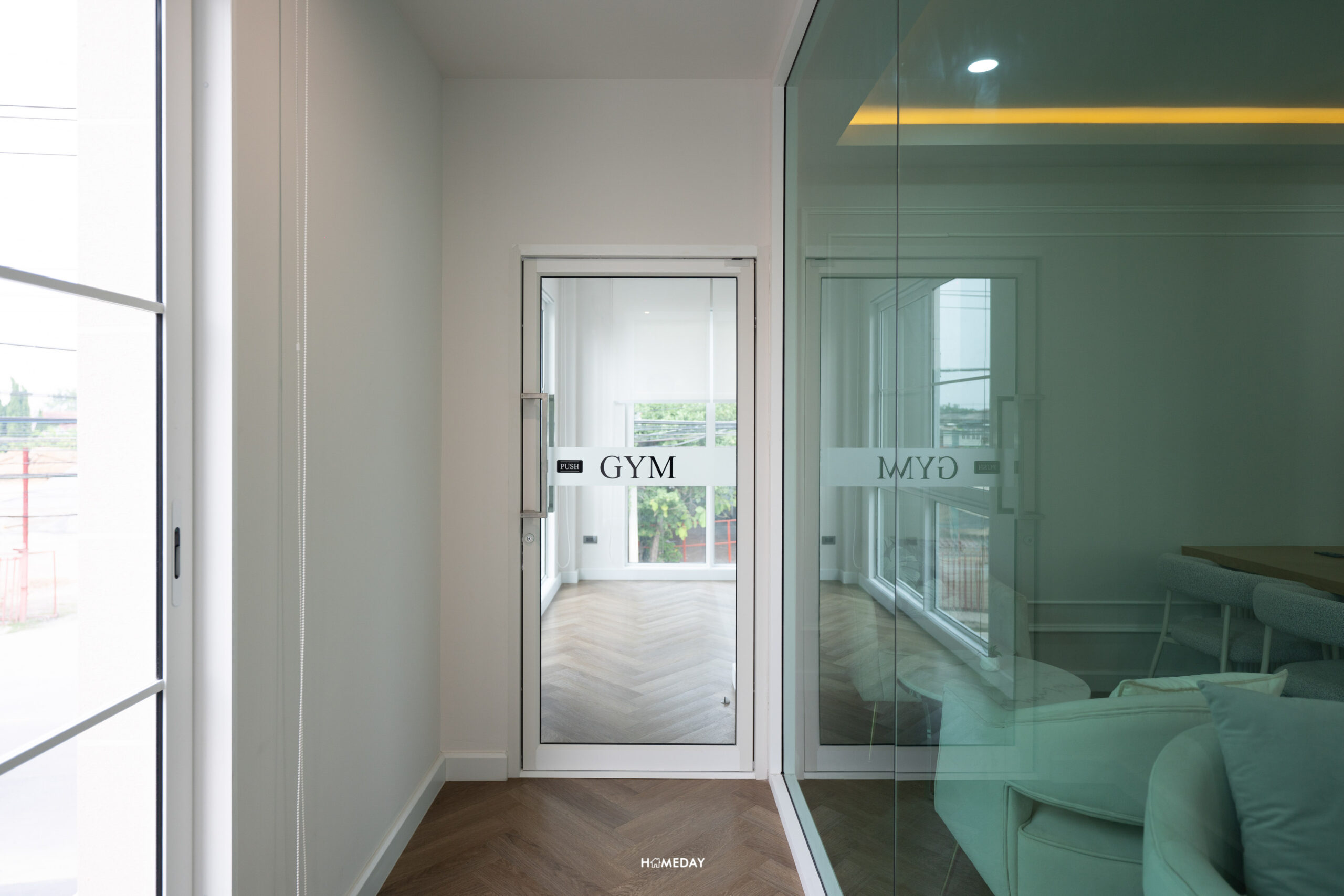 ชั้น 2 ของอาคารจะมีห้อง Juristic, ห้อง Co-living Space และ Gym Room โดย Gym Room ตัวห้องจะมีการออกแบบให้มีช่องแสงรับวิวสูงเกือบสุดเพดาน ให้ความรู้สึกโปร่ง โล่ง ไม่อึดอัด เครื่องออกกำลังกายก็มีมาให้ครบ ทั้ง Cardio และ Weight Training มีกระจกเงาแบบเต็มบานไว้ให้เช็กดูร่างกายตอนออกกำลังได้อย่างถูกต้อง