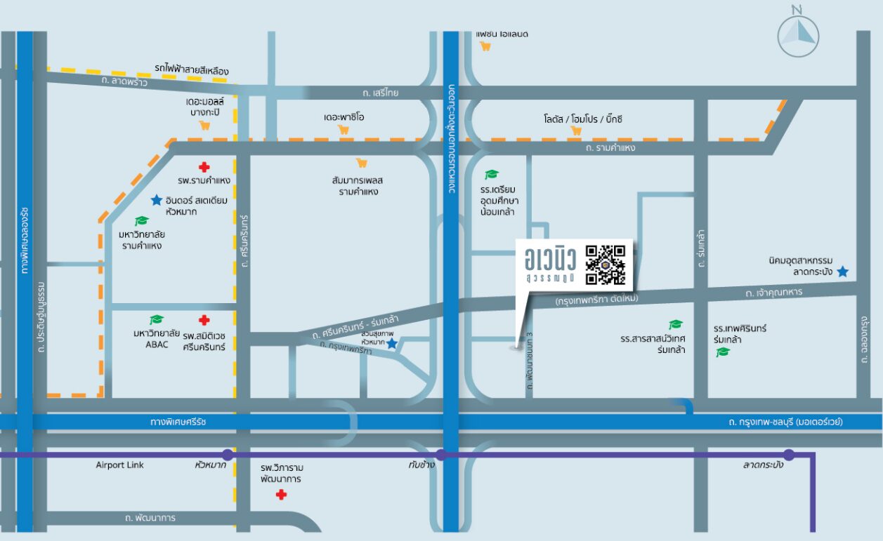 ทำเลที่ตั้ง ซอยศรีนครินทร์-ร่มเกล้า แขวงหัวหมาก เขตบางกะปิ กทม. 10240 สิ่งอำนวยความสะดวกรอบโครงการ แบบบ้าน : DEFINE 230 230 ตร.ม. 3 ห้องนอน 4 ห้องน้ำ 1 ห้องอเนกประสงค์ 1 ชั้นลอย 2 ที่จอดรถ