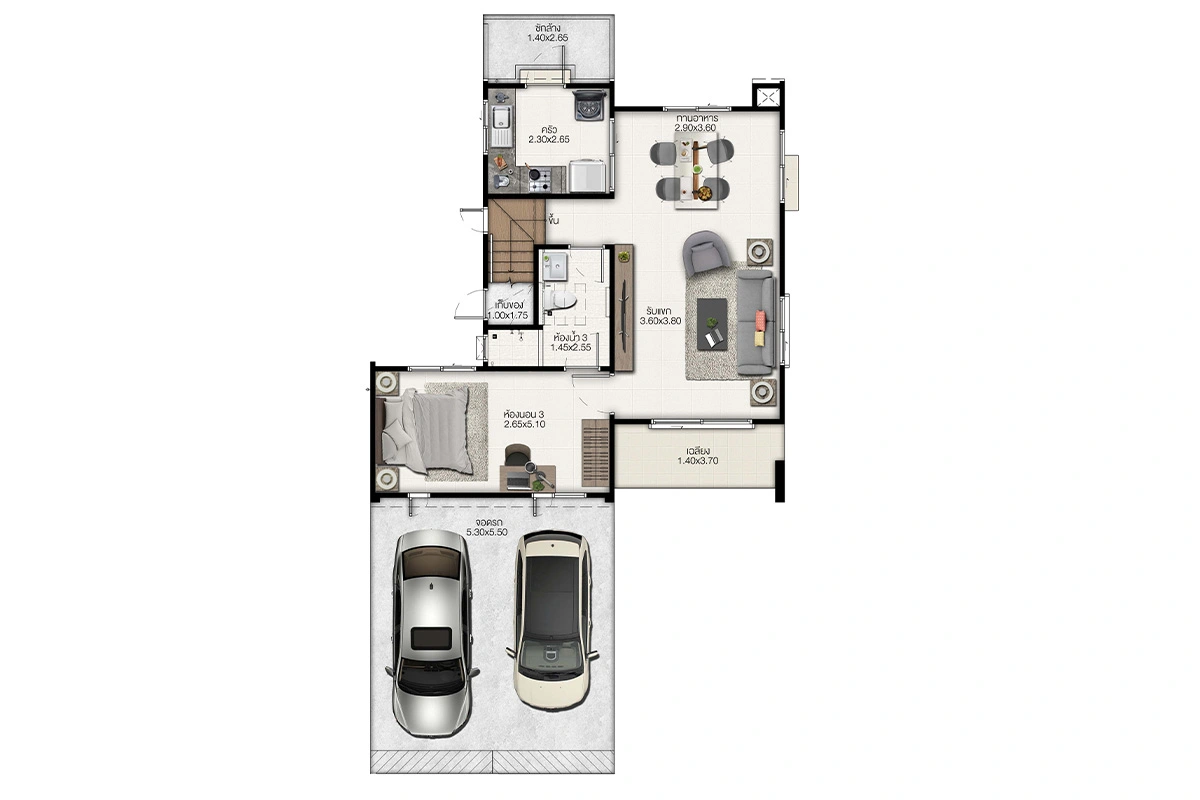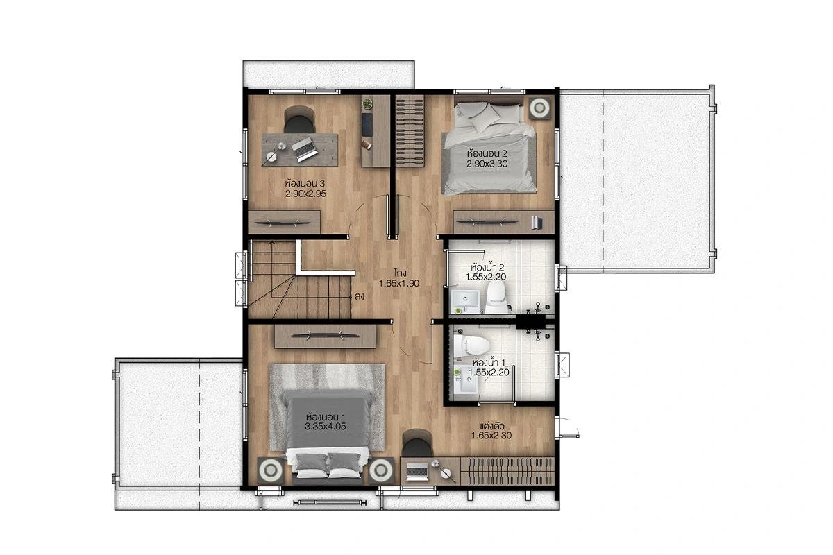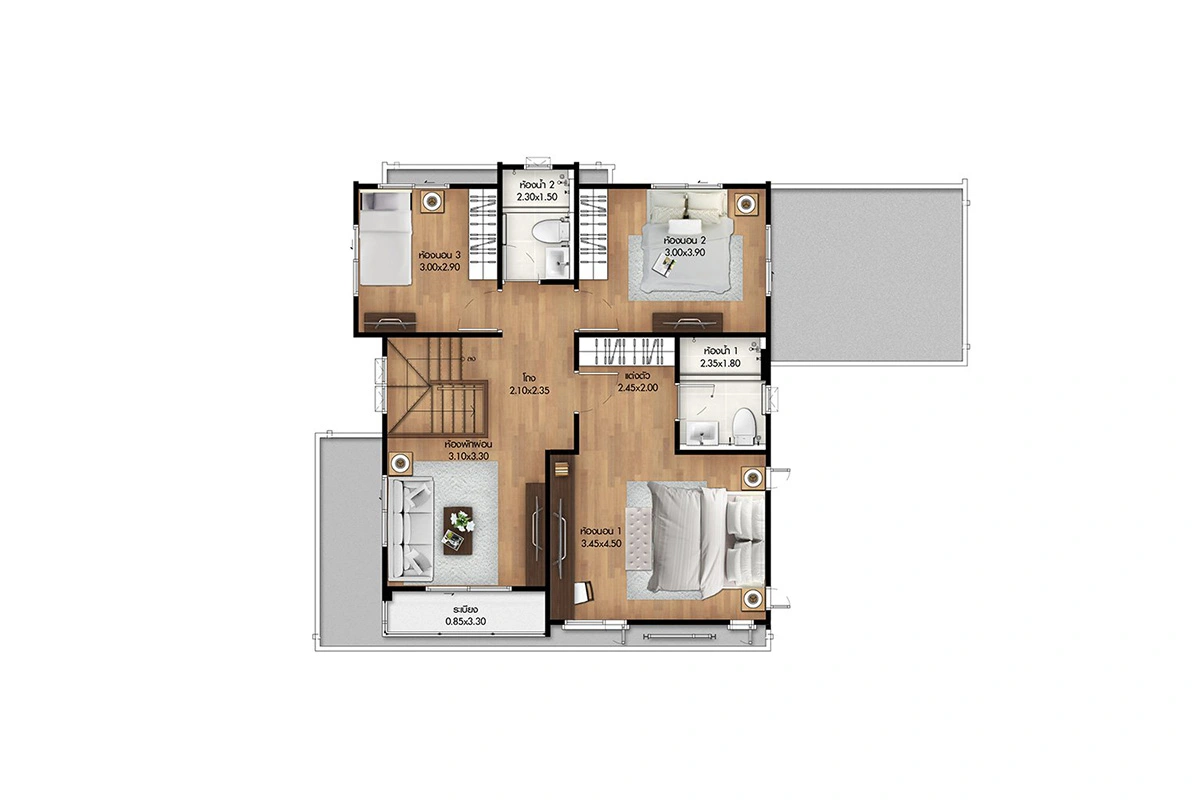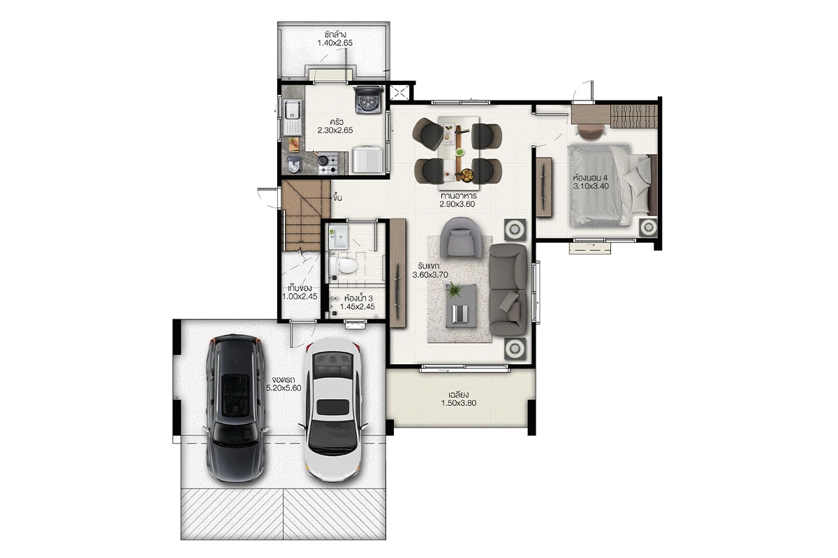 แบบบ้าน : ศุภจิตรา พื้นที่ใช้สอย 261 ตร.ม. 4 ห้องนอน 4 ห้องน้ำ ที่จอดรถ 3 คัน แบบบ้าน : ศุภฤทัย พื้นที่ใช้สอย 208 ตร.ม. 4 ห้องนอน 3 ห้องน้ำ ที่จอดรถ 2 คัน