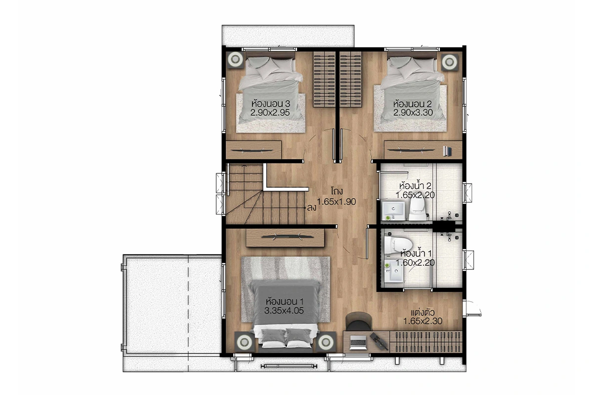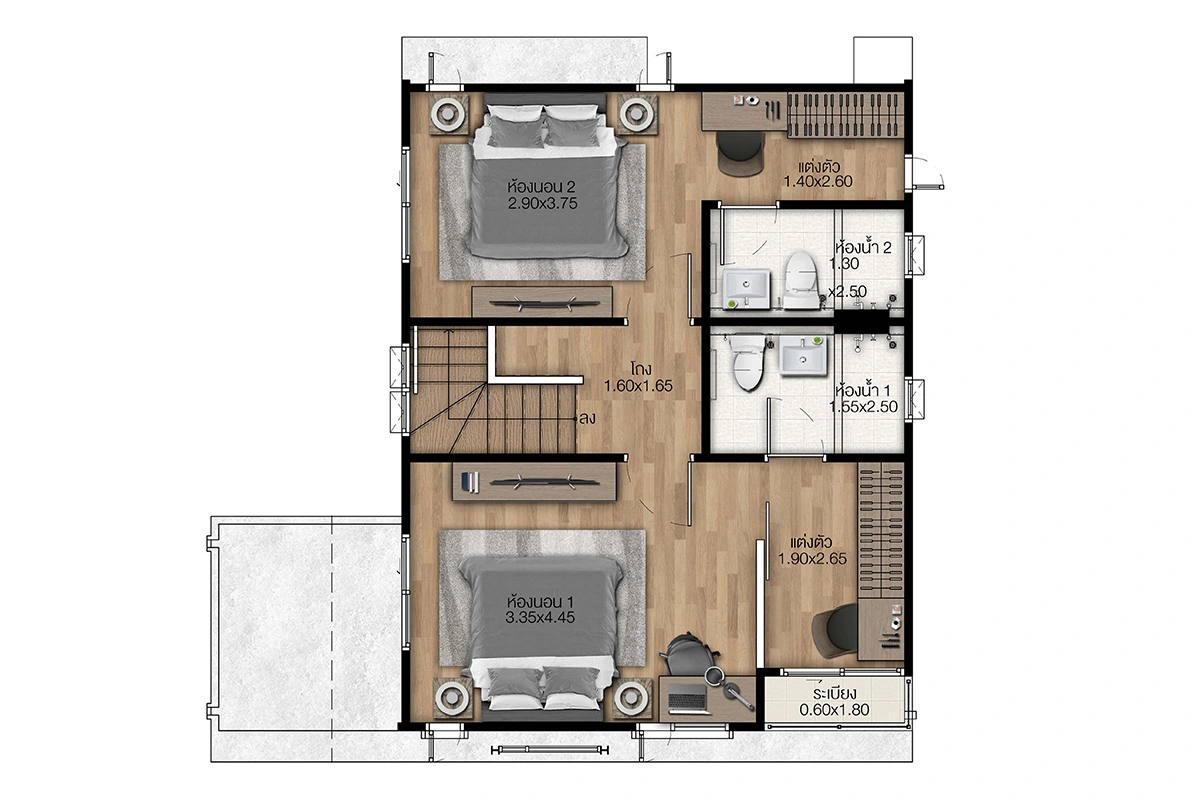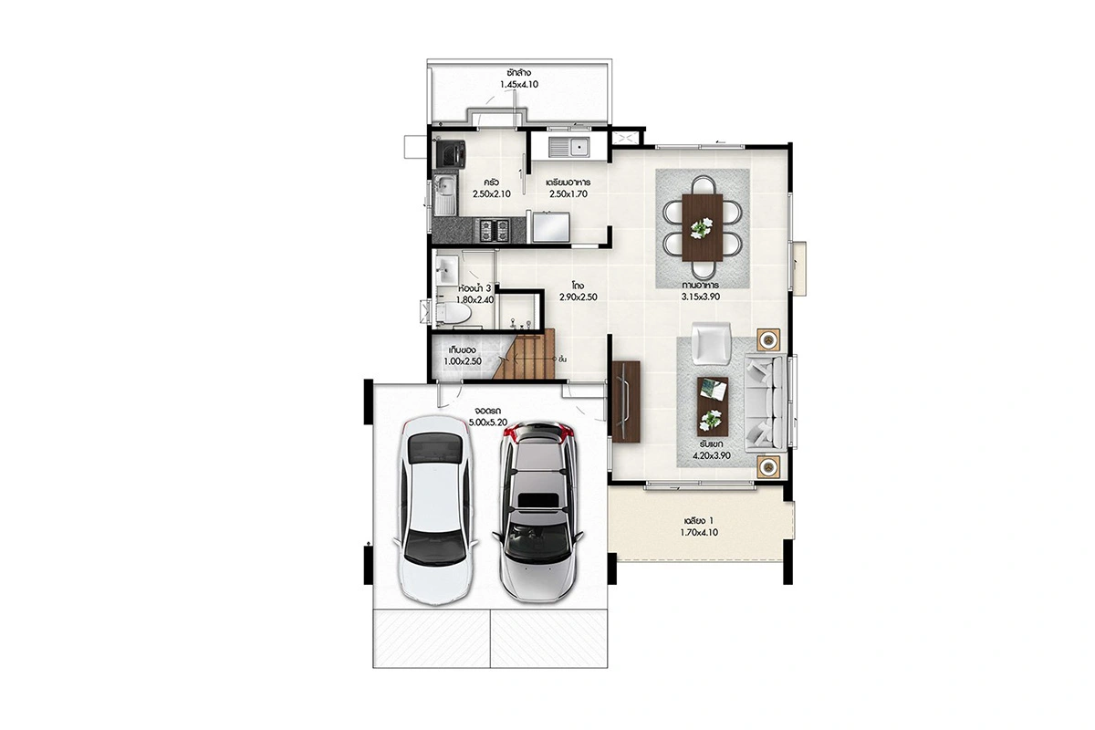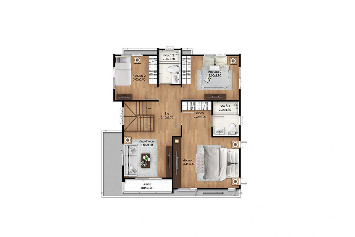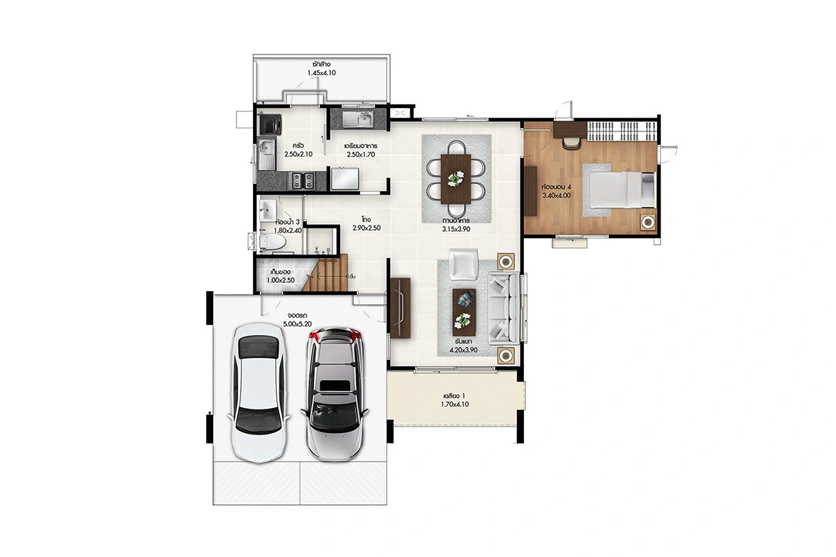 แบบบ้าน : ศุภจิตรา พื้นที่ใช้สอย 261 ตร.ม. 4 ห้องนอน 4 ห้องน้ำ ที่จอดรถ 3 คัน แบบบ้าน : ศุภฤทัย พื้นที่ใช้สอย 208 ตร.ม. 4 ห้องนอน 3 ห้องน้ำ ที่จอดรถ 2 คัน