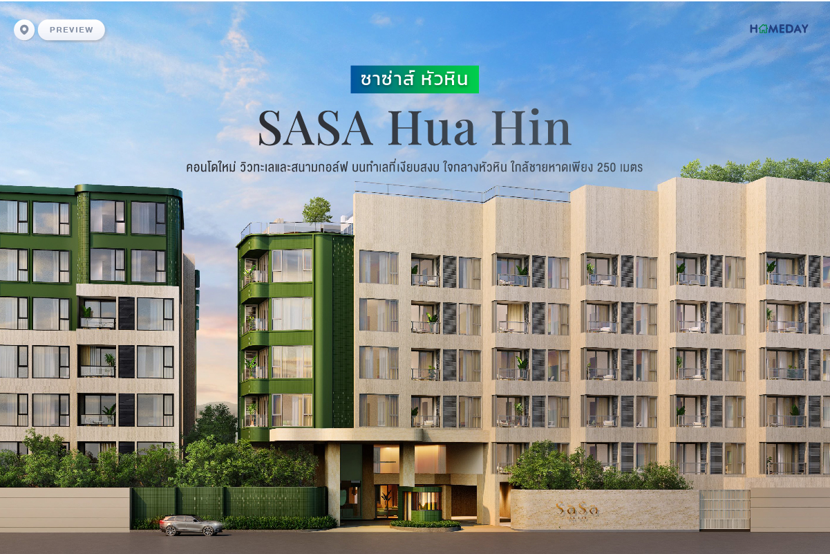 "ซาซ่าส์ หัวหิน (SASA Hua Hin) A New Stylish Beach Condominium บนที่ดินผืนงามในหัวหิน ภายใต้แนวคิด “The GEM Of Escape” การค้นพบอัญมณีแห่งการพักผ่อนที่แท้จริง เต็มอิ่มกับวิวสนามกอล์ฟ และน้ำทะเลที่ทอดยาวตัดกับผืนฟ้า สะท้อนความเป็นธรรมชาติในการพักผ่อน"