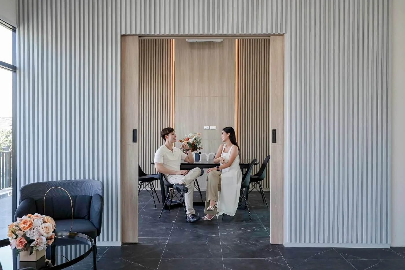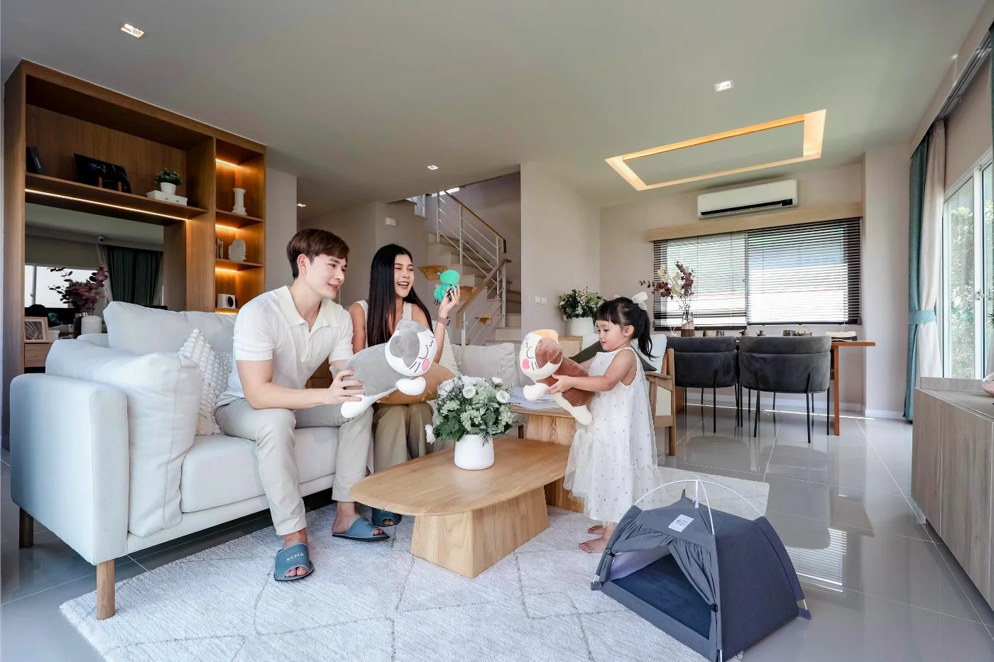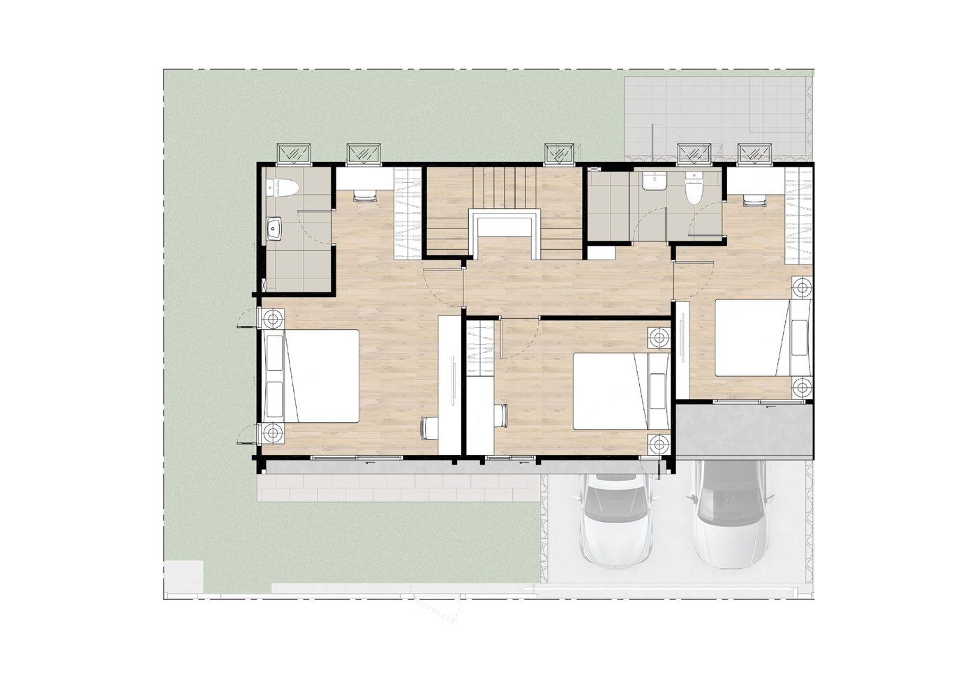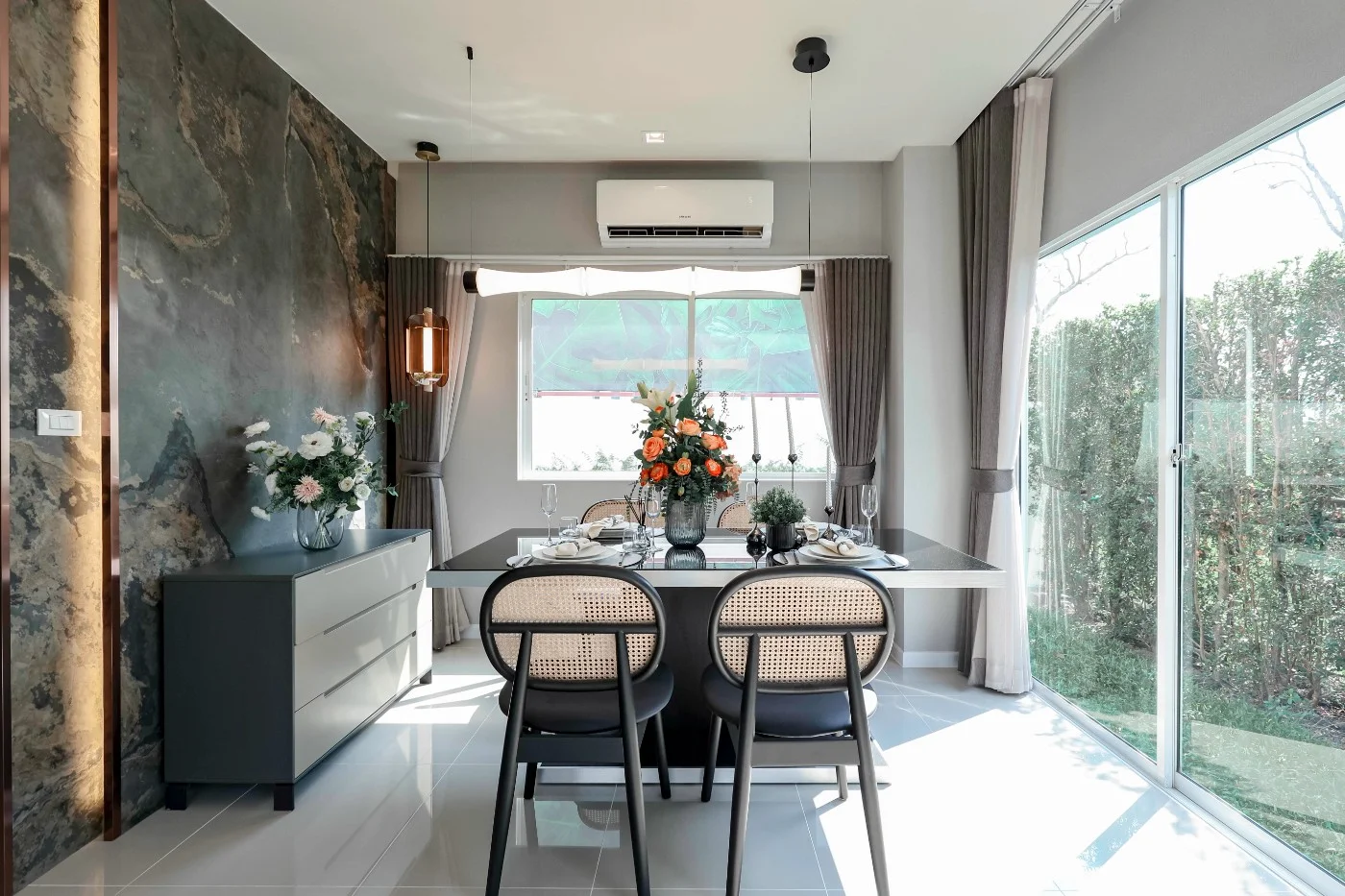 แบบบ้าน : CANE พื้นที่ใช้สอย 180 ตารางเมตร 4 ห้องนอน 3 ห้องน้ำ 1 ห้องรับแขก 1 ห้องรับประทานอาหาร ครัวแยกสัดส่วน เคาน์เตอร์เตรียมอาหาร ระเบียงชมวิว ที่จอดรถ 2 คัน