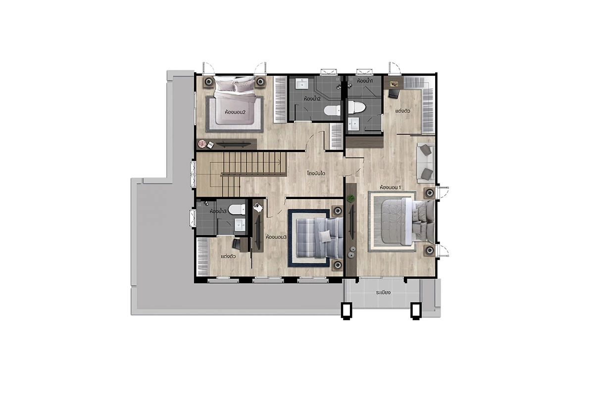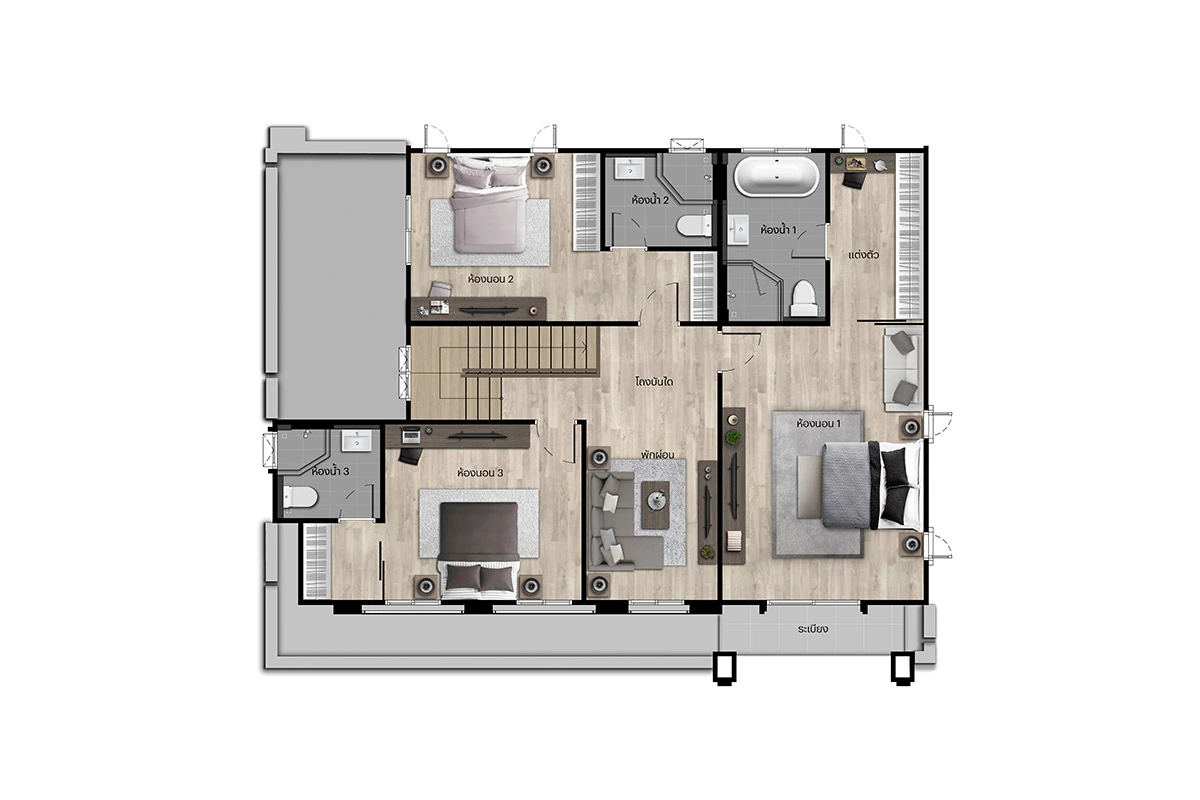 แบบบ้าน : ANILA พื้นที่ใช้สอย 121 ตร.ม. 3 ห้องนอน 3 ห้องน้ำ 2 ที่จอดรถ 1 ห้องครัว 1 ห้องรับประทานอาหาร แบบบ้าน : ARUNA พื้นที่ใช้สอย 176 ตร.ม. 3 ห้องนอน 3 ห้องน้ำ 2 ที่จอดรถ 1 ห้องครัว