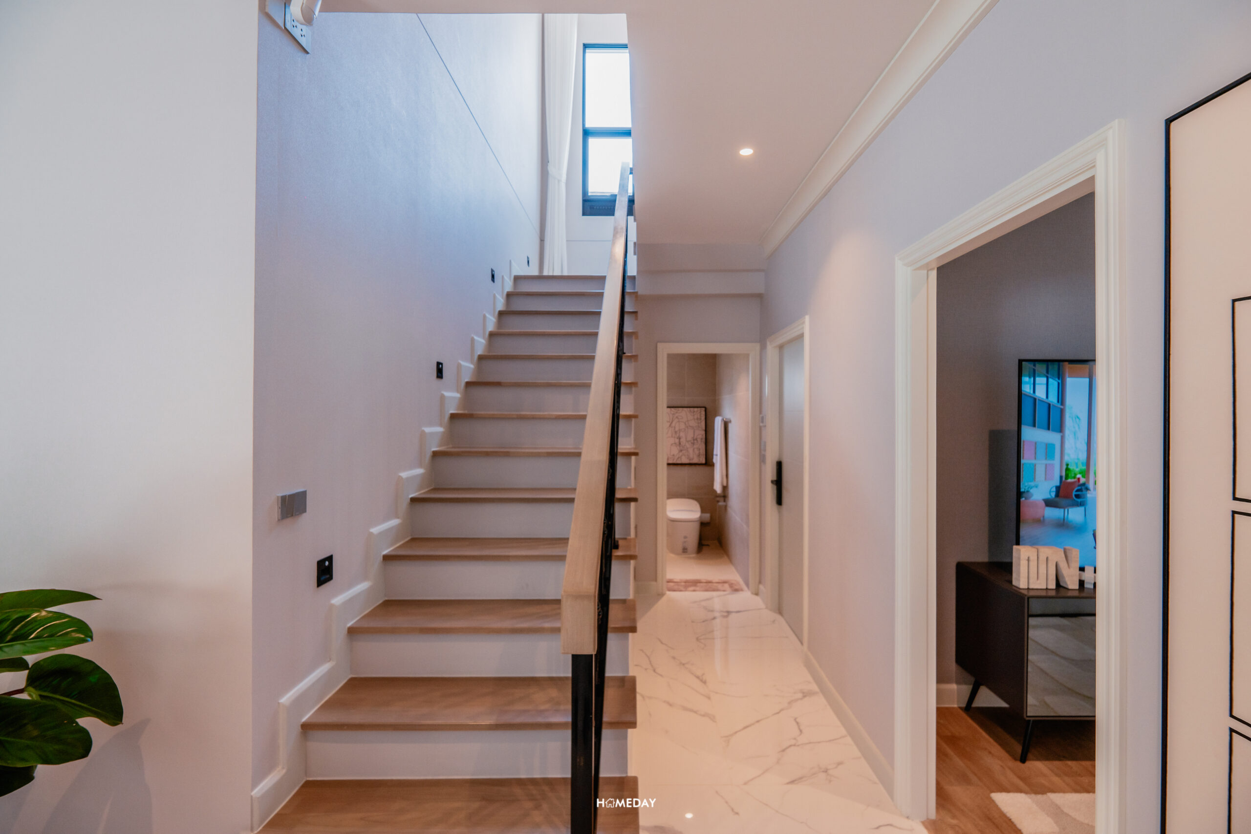 ถัดจาก Bedroom 3 ไปจะเป็นโถงบันไดกว้างที่มีพื้นที่พักผ่อนอเนกประสงค์ Family Area อยู่ครับ ความสูงทั้งหมดของพื้นที่ชั้น 2 จะอยู่ที่ 2.9 เมตร โปร่งมากขึ้นจากชั้นล่างไปอีกครับ พื้นทั้งหมดจะเป็นพื้นไม้แบบเดียวกันกับห้องนอนชั้นล่างทุกประการ เดินสบาย ปลอดภัย ลดแรงกระแทกได้เป็นอย่างดี