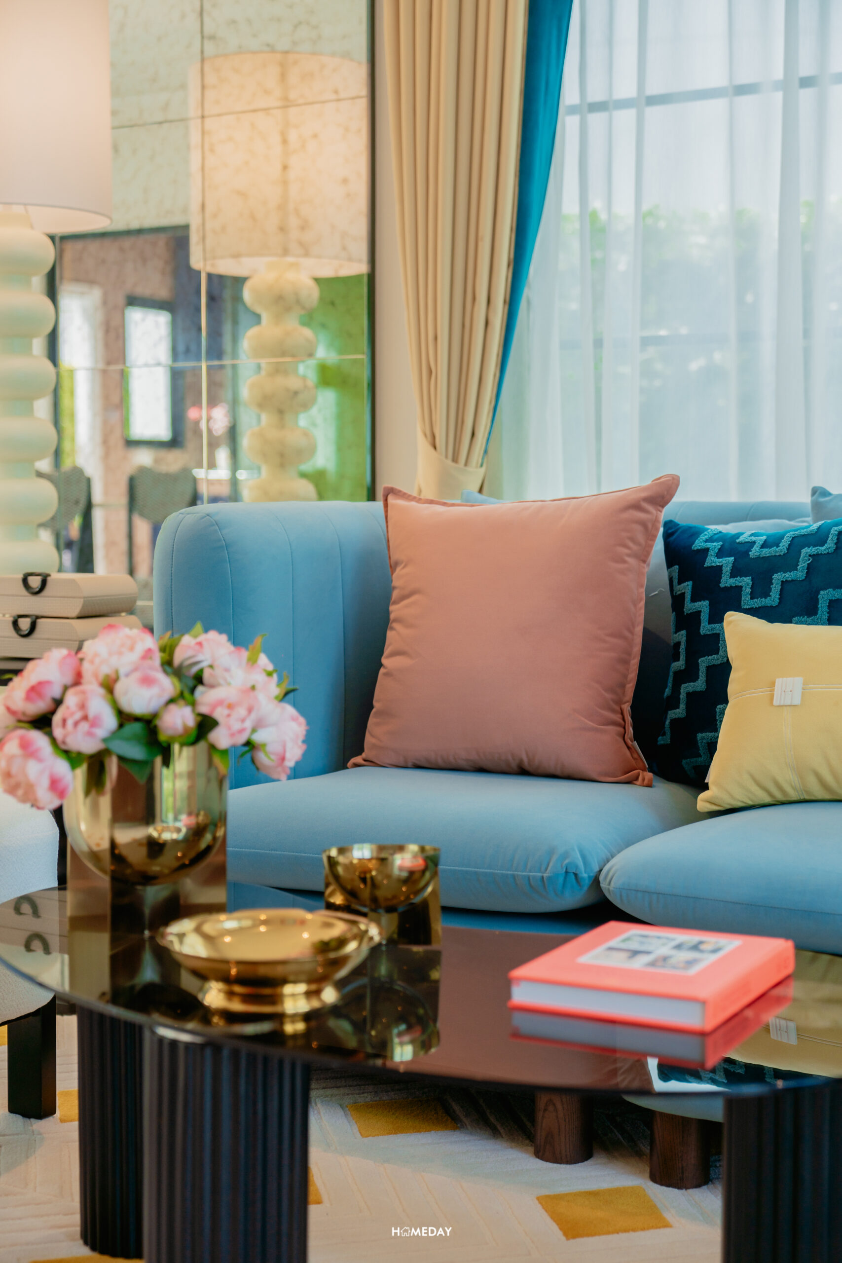 จะเพิ่มโต๊ะข้างและโต๊ะกลาง สำหรับวางของเหมือนกับบ้านตัวอย่างก็ได้เช่นกันครับ ด้วยหน้ากว้างที่ค่อนข้างมีพื้นที่เหลือเยอะ สามารถเลือกขนาดและดีไซน์ของเฟอร์นิเจอร์ได้หลากหลาย ไม่รบกวนการเดินเข้า-ออกพื้นที่อย่างแน่นอน