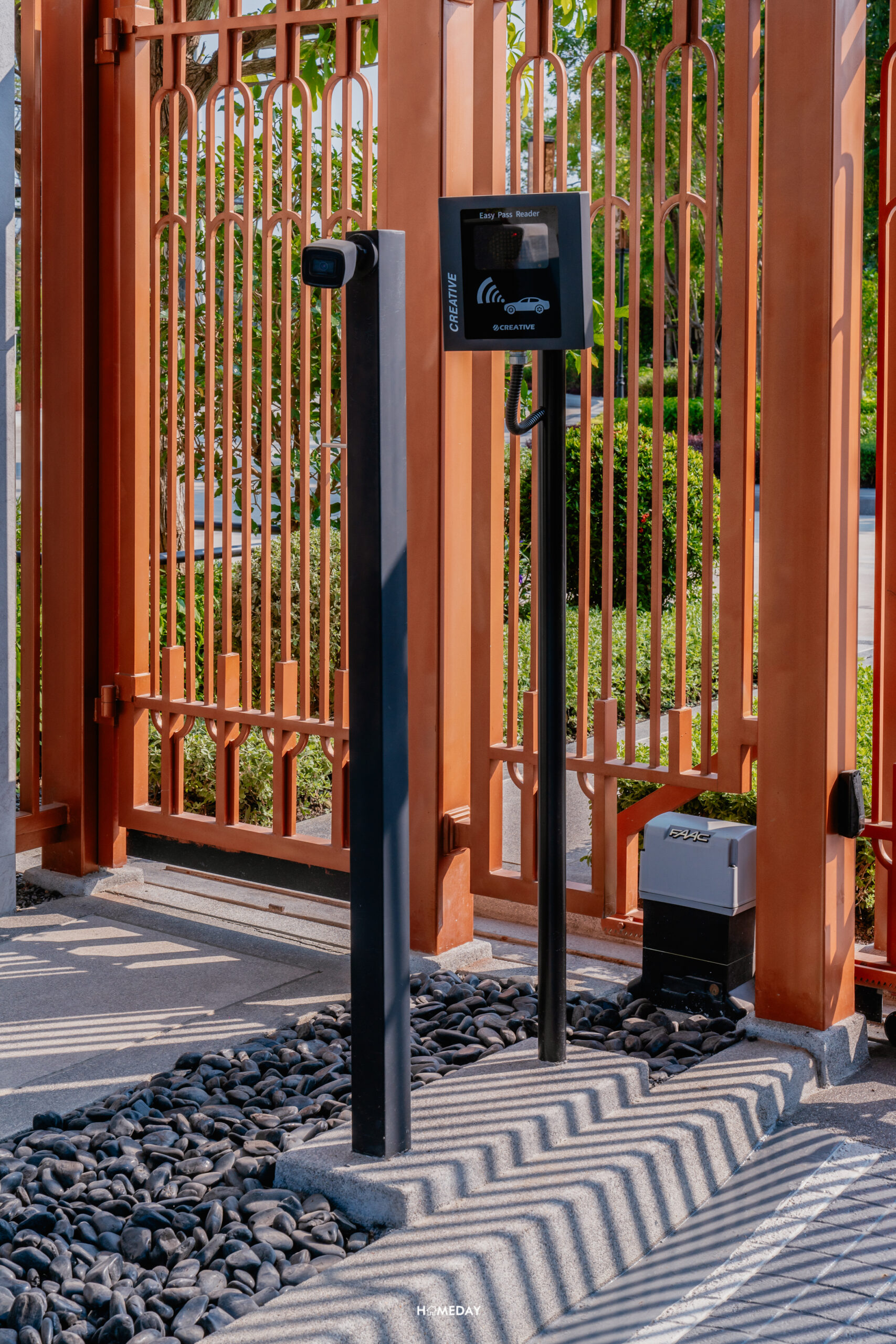 ส่วนลูกบ้าน จะเชื่อมผ่านเข้าโครงการด้วยระบบ RFID Sensor เป็นอุปกรณ์ติดตั้งหน้ารถ เพื่อเข้า-ออกโครงการได้อัตโนมัติ เมื่อรถขับเข้ามาใกล้ ประตูรั้วอัตโนมัติก็จะเปิดออกให้ ไม่ต้องเสียเวลาแตกบัตรให้ยุ่งยากครับ นอกจากนี้ทั้งฝั่งขาเข้าและขาออกก็ได้มีการติดตั้ง CCTV เพื่อตรวจจับภาพรถทุกคันเอาไว้ด้วย อุ่นใจ ปลอดภัยกับมาตรฐานการดูแลลูกบ้านได้ หายห่วงแน่นอนครับ