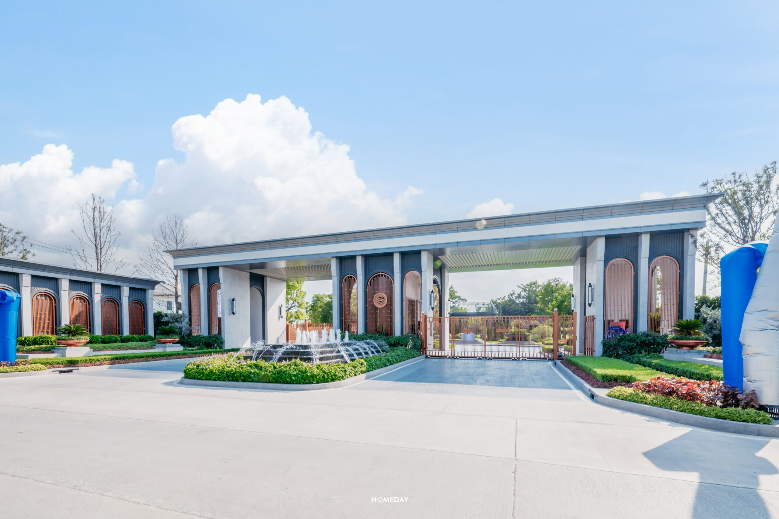 ซุ้มประตูทางเข้าของโครงการ ต้อนรับด้วยน้ำพุและไม้ประดับตัดแต่งสวยงาม ให้ความรู้สึกร่มรื่น ตัว Gate ดีไซน์แบบ Modern Classic รับกับแบบบ้าน เพิ่มเอกลักษณ์ความสวยงามที่โดดเด่นด้วยเหล็กดัดทองแดงที่ดูพรีเมียมหรูหรา