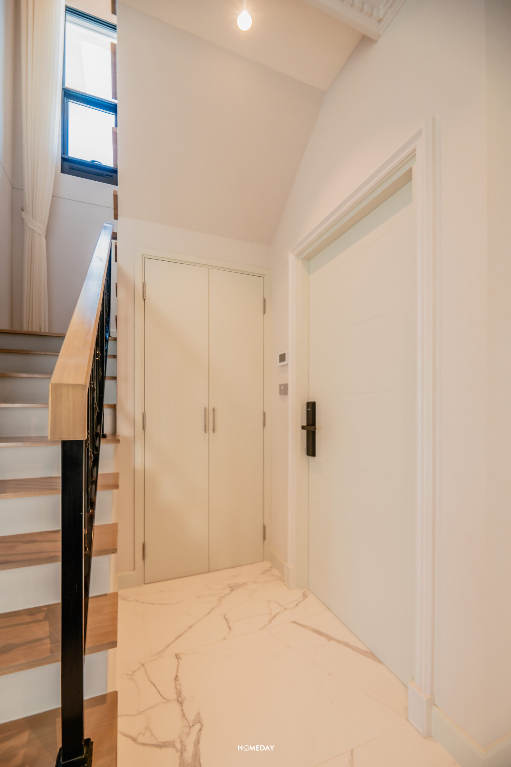 ฝั่งข้างบันไดจะเป็นทางออกเชื่อมโรงจอดรถ ใต้บันไดได้พื้นที่ห้องเก็บของขนาดใหญ่มาด้วยครับ