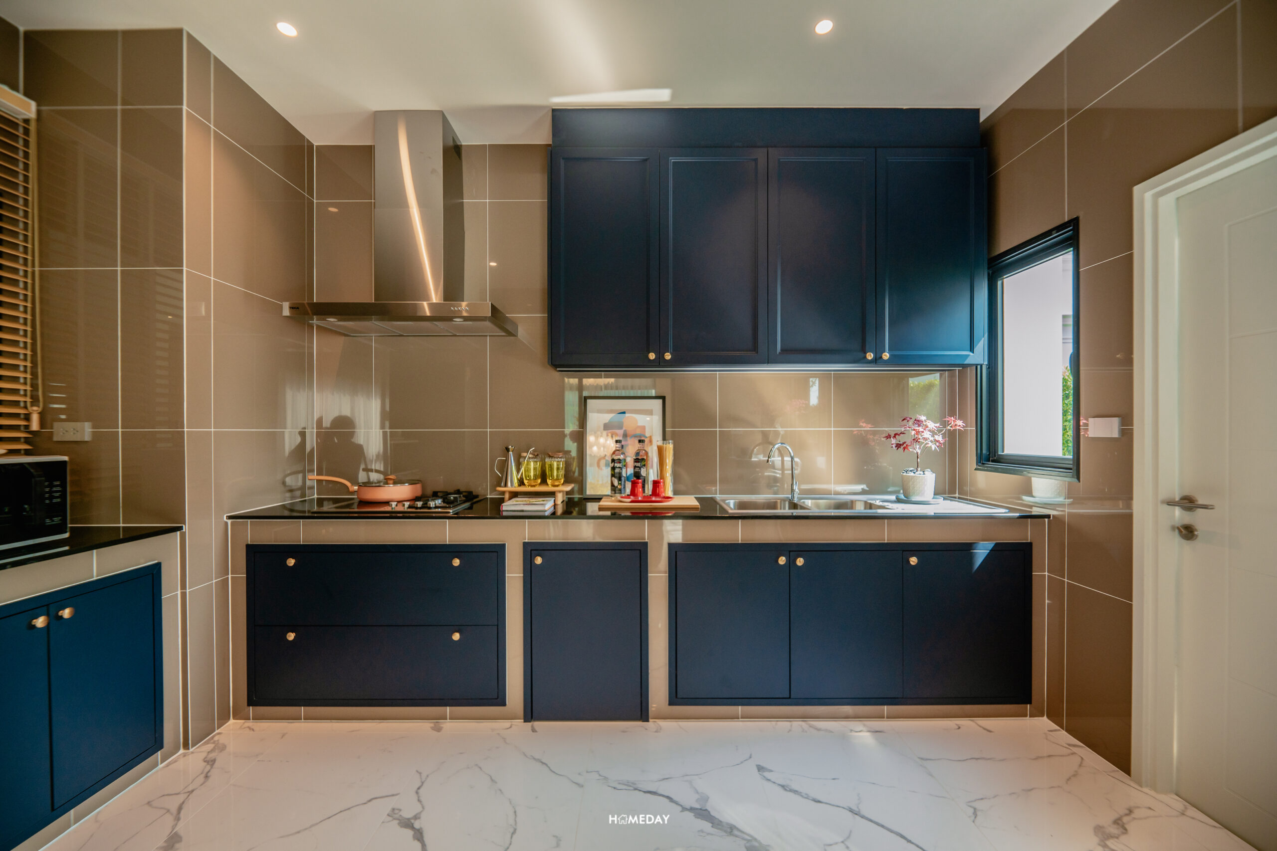 ภายในได้พื้นที่ครัวขนาดใหญ่ ได้พื้นที่เตรียมอาหารจุใจแน่นอน ทางโครงการบิลต์อินเคาน์เตอร์ครัวมาให้ 2 ฝั่งเหมือนแบบบ้านตัวอย่าง กรุกระเบื้องผนังมาให้อย่างดี รองรับการเช็ดล้างทำความสะอาด พร้อมมีระบบน้ำและไฟฟ้าสำหรับติดตั้งเครื่องซักผ้าไว้ให้ด้วยครับ
