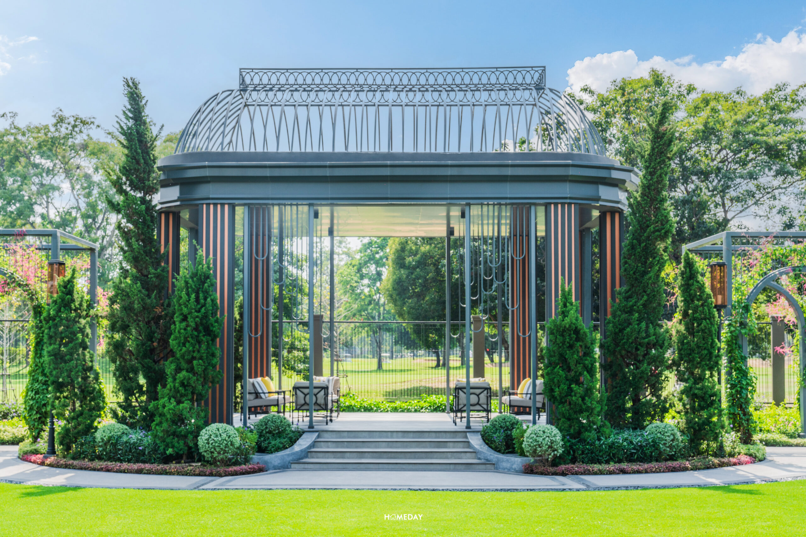 ใครที่อยากแวะมานั่งเล่นพักผ่อนรับลมเย็น ๆ ภายในสวนก็มี Pavilion ขนาดใหญ่รองรับให้พร้อมพื้นที่นั่งเล่น แวะมาผ่อนคลายสบาย ๆ ชมบรรยากาศพัตกอล์ฟติดข้างสนามได้เลยครับ