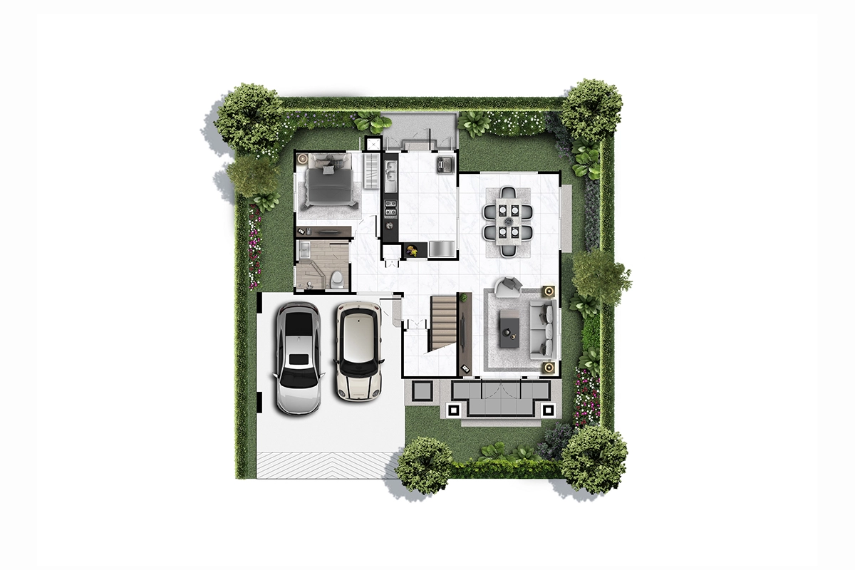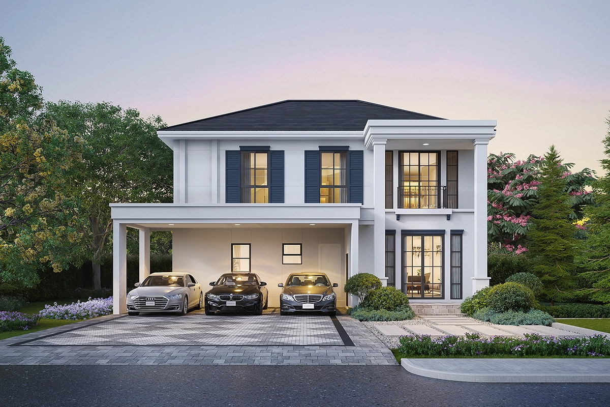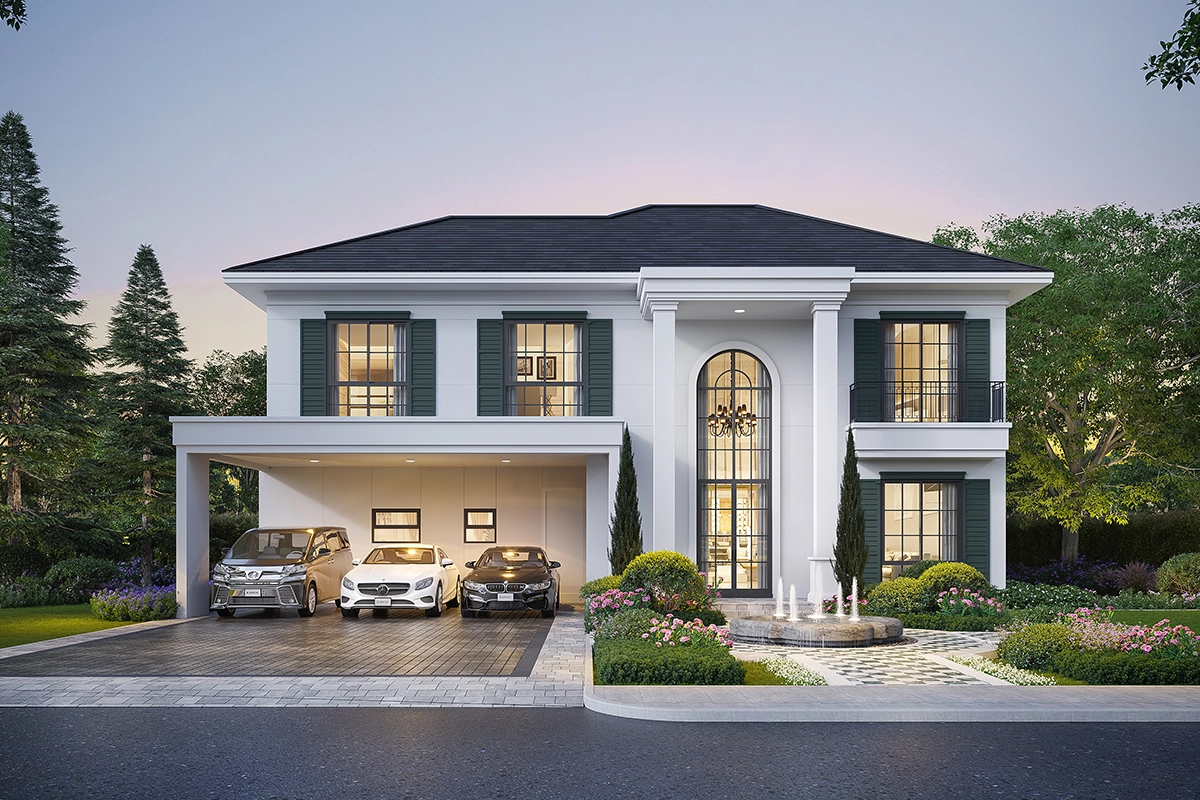 พื้นที่ใช้สอย 462 ตร.ม. 5 ห้องนอน 6 ห้องน้ำ 1 ห้องรับแขก ห้องอเนกประสงค์ ห้องครัว มุมพักผ่อนด้านบน ห้องแม่บ้าน ที่จอดรถ 4 คัน