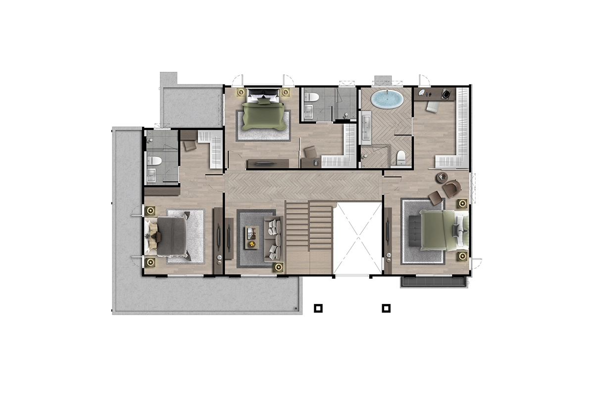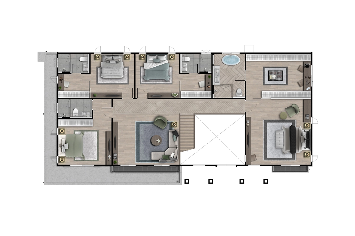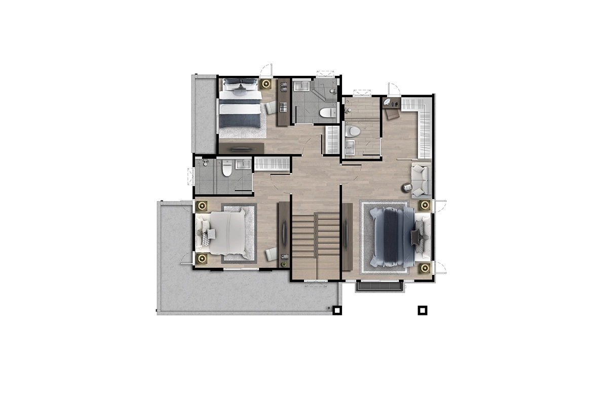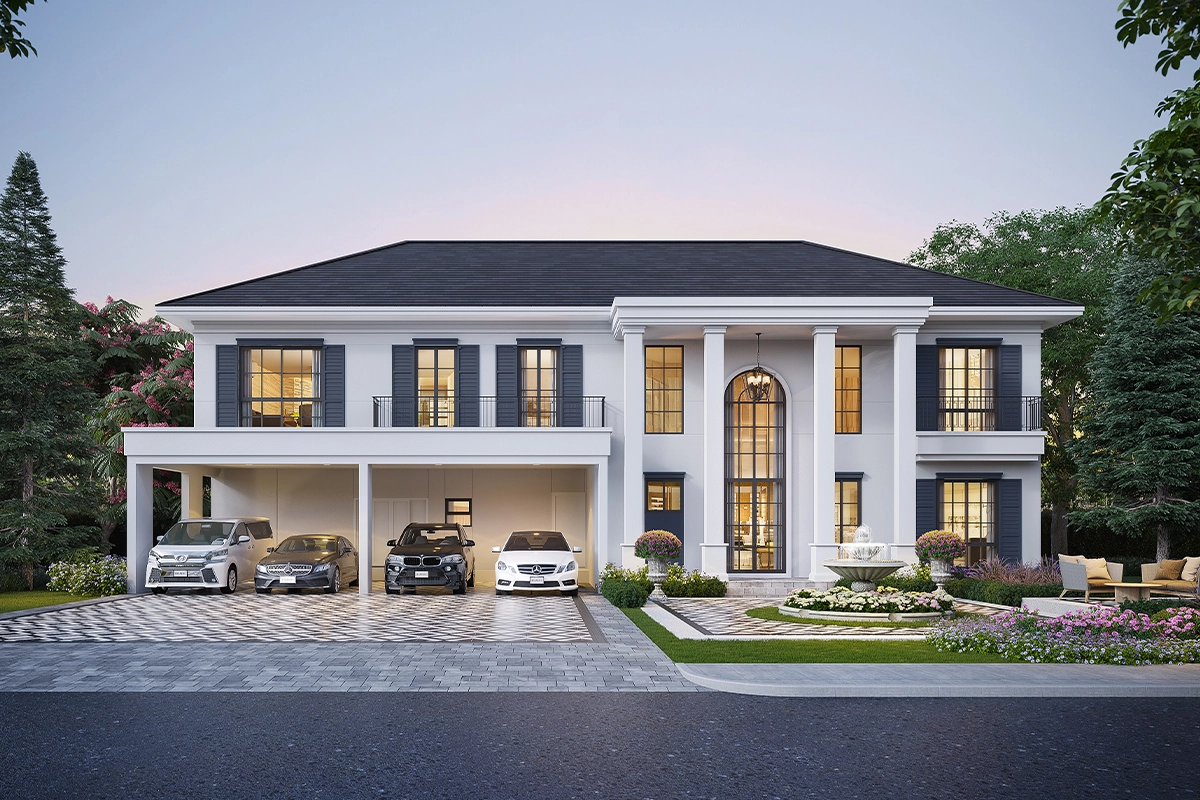 พื้นที่ใช้สอย 462 ตร.ม. 5 ห้องนอน 6 ห้องน้ำ 1 ห้องรับแขก ห้องอเนกประสงค์ ห้องครัว มุมพักผ่อนด้านบน ห้องแม่บ้าน ที่จอดรถ 4 คัน