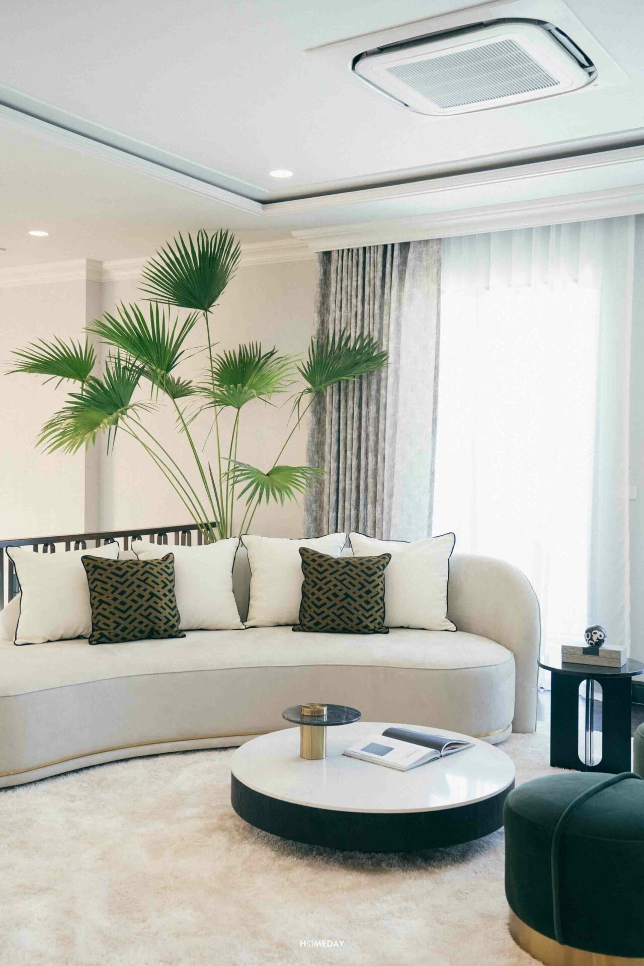 โดยพื้นที่รอบเตียงยังมีเหลือให้ใช้งานได้อีกเยอะมาก ๆ ซึ่งจากห้องตัวอย่าง ทางโครงการหยิบเฟอร์ฯ ชิ้นต่าง ๆ มาวางให้ดูเป็นแนวทาง เราจะเห็นได้เลยว่าหัวเตียงทั้งสองฝั่ง สามารถวางโต๊ะหัวเตียงได้ ปลายเตียงสามารถวางโซฟาขนาดกำลังดีพร้อมโต๊ะกลาง ด้านข้างเหลือให้สามารถบิลต์อินชั้นวางของ พร้อมวางอาร์มแชร์และโต๊ะข้างได้แบบสบาย ๆ