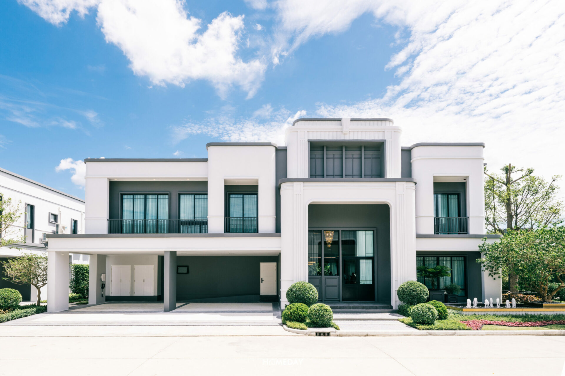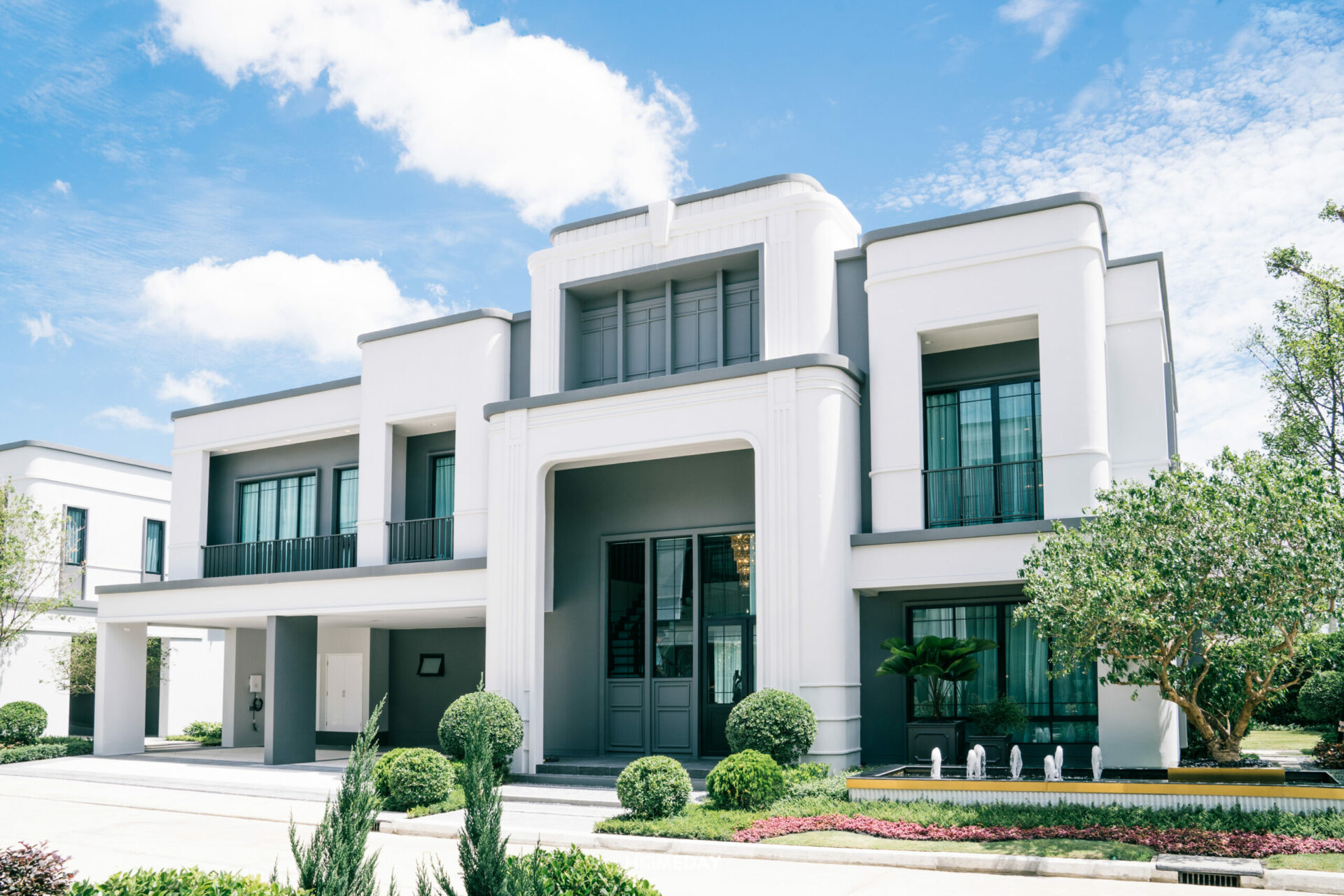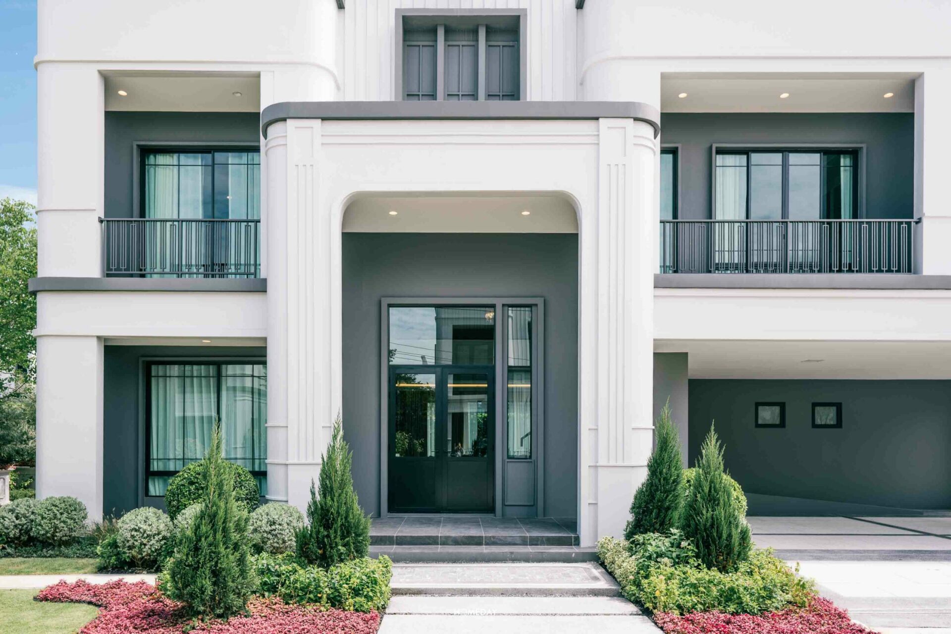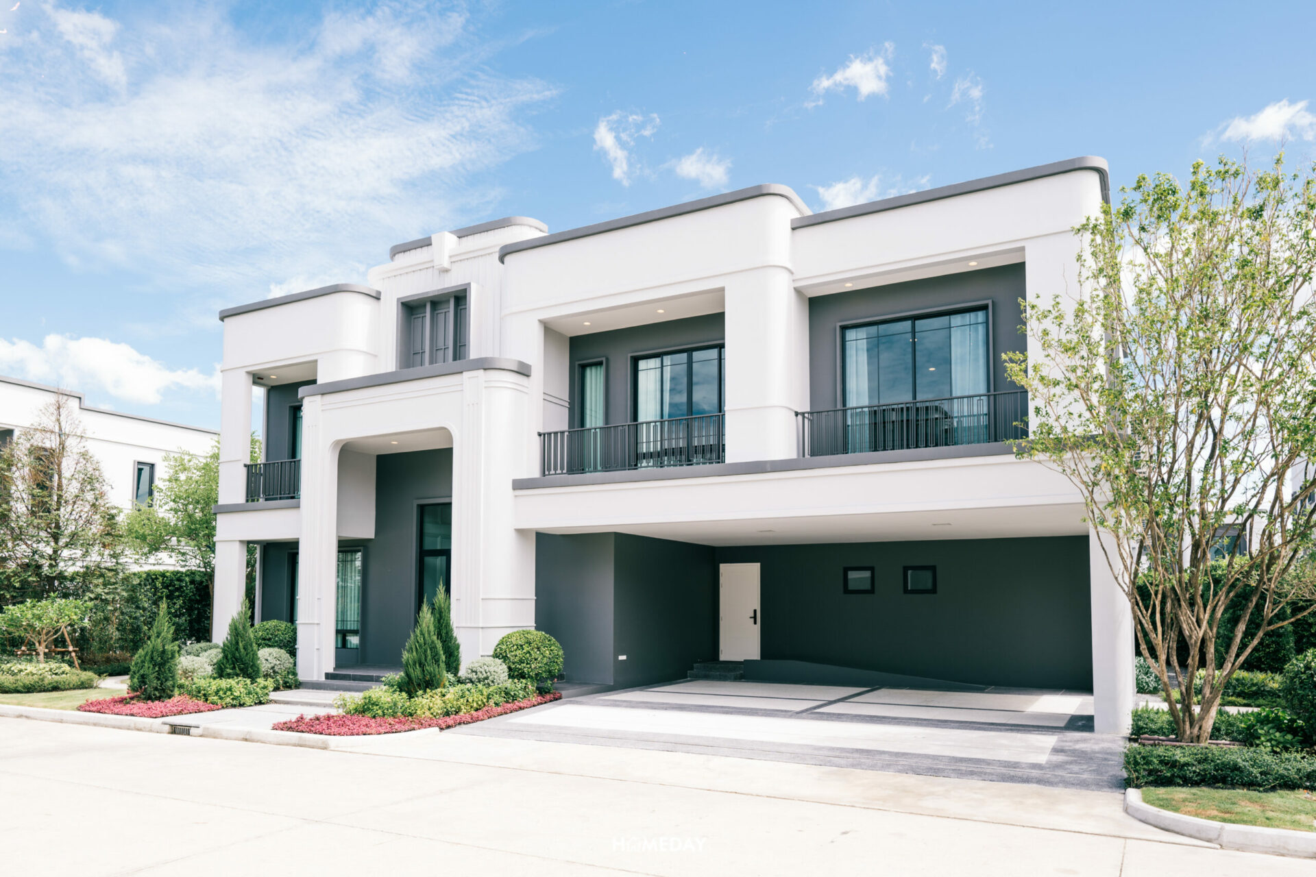 มาดูแบบบ้านขนาดรองลงมาอย่าง René 03 กันต่อเลยครับ แบบบ้านนี้ก็ขนาดใหญ่ไม่แพ้กัน มาเริ่มต้นสำรวจจากพื้นที่หน้าบ้านกันก่อนเลย