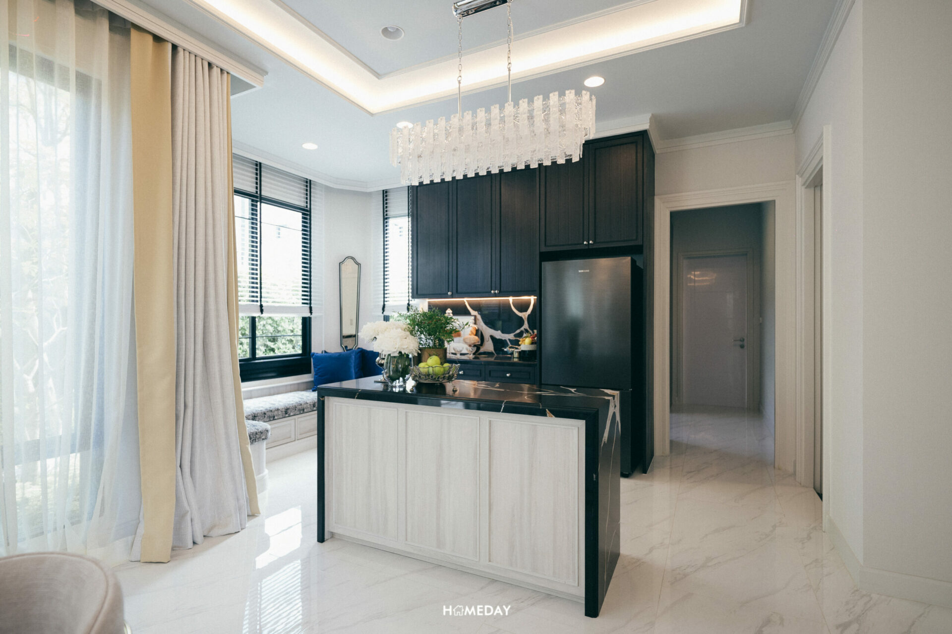 ในส่วนของ Pantry มุมทำอาหารเบา ๆ เราจะตกแต่งตามบ้านตัวอย่างก็ได้ครับ หรือจะใช้งานเป็นพื้นที่อื่น ๆ ก็ได้เช่นกัน อาจจะวางเครื่องดนตรีอย่าง Grand Piano ก็ได้ ขึ้นอยู่กับการใช้งานของเราเลยครับ เพราะบ้านทุกหลังของทางโครงการออกแบบพื้นที่ในส่วนของครัวไทยและลานซักล้างเอาไว้ให้เรียบร้อยแล้ว