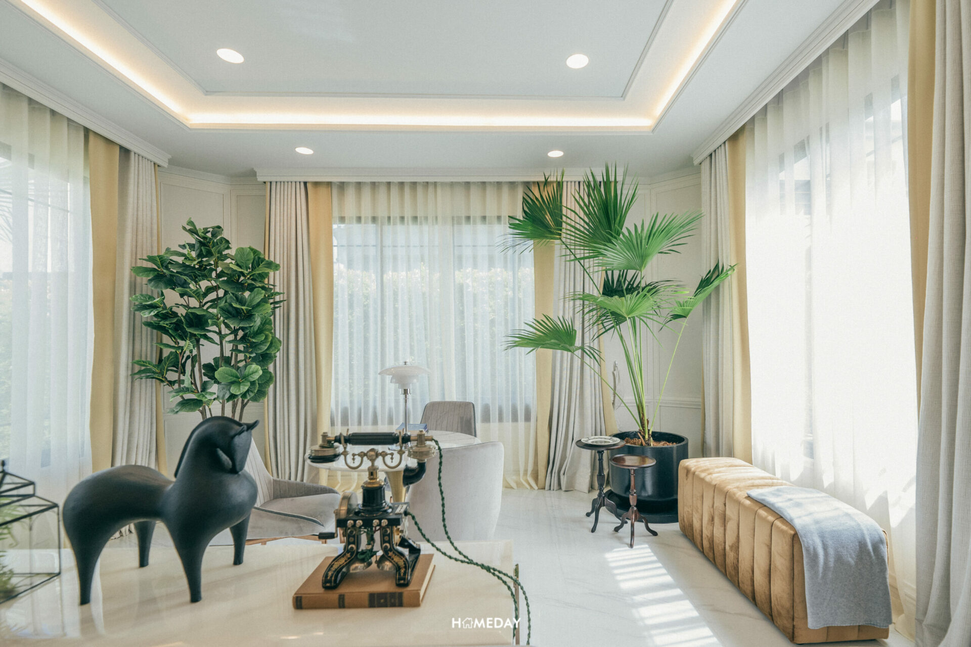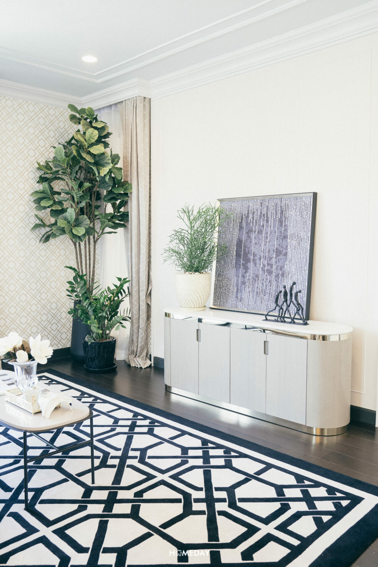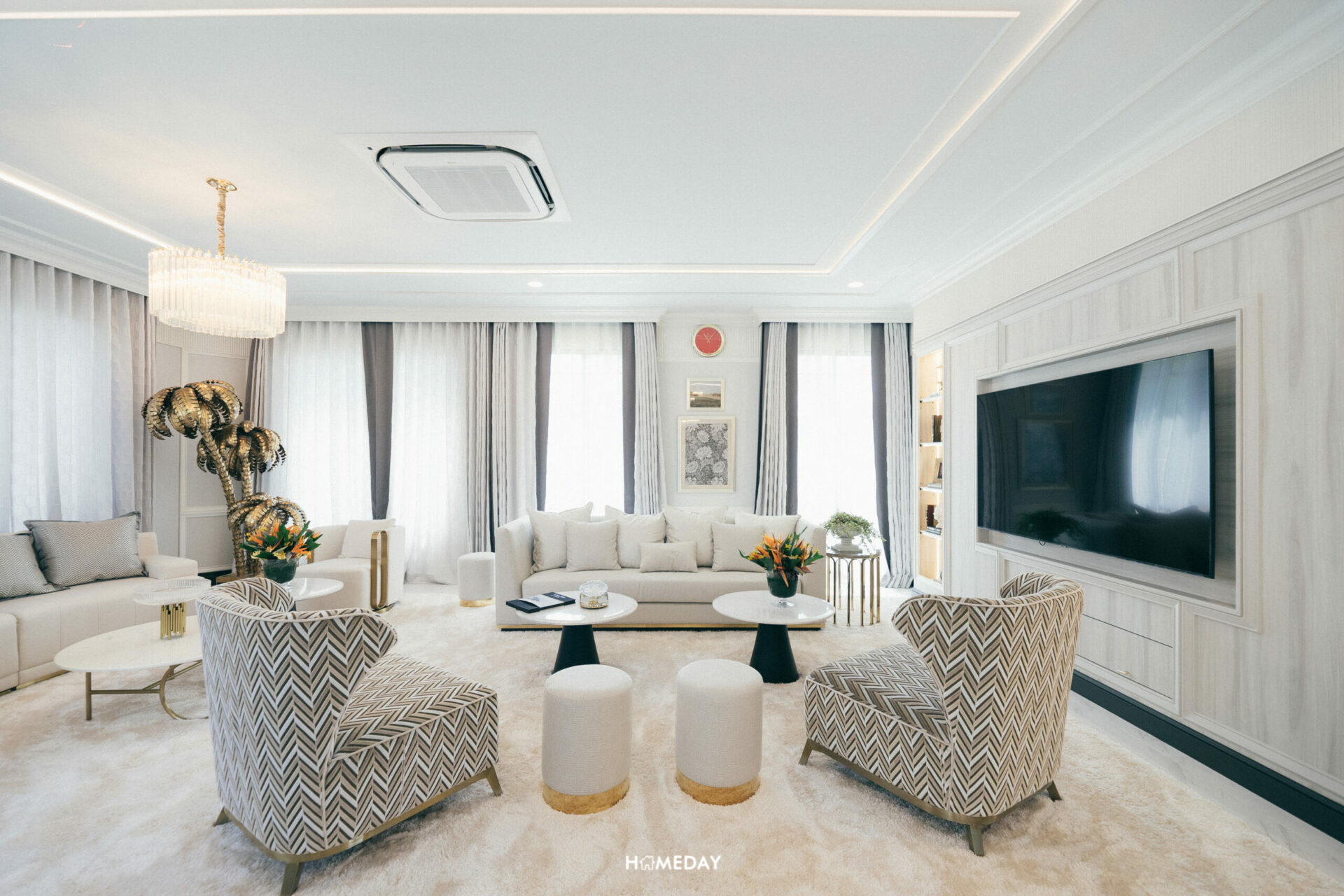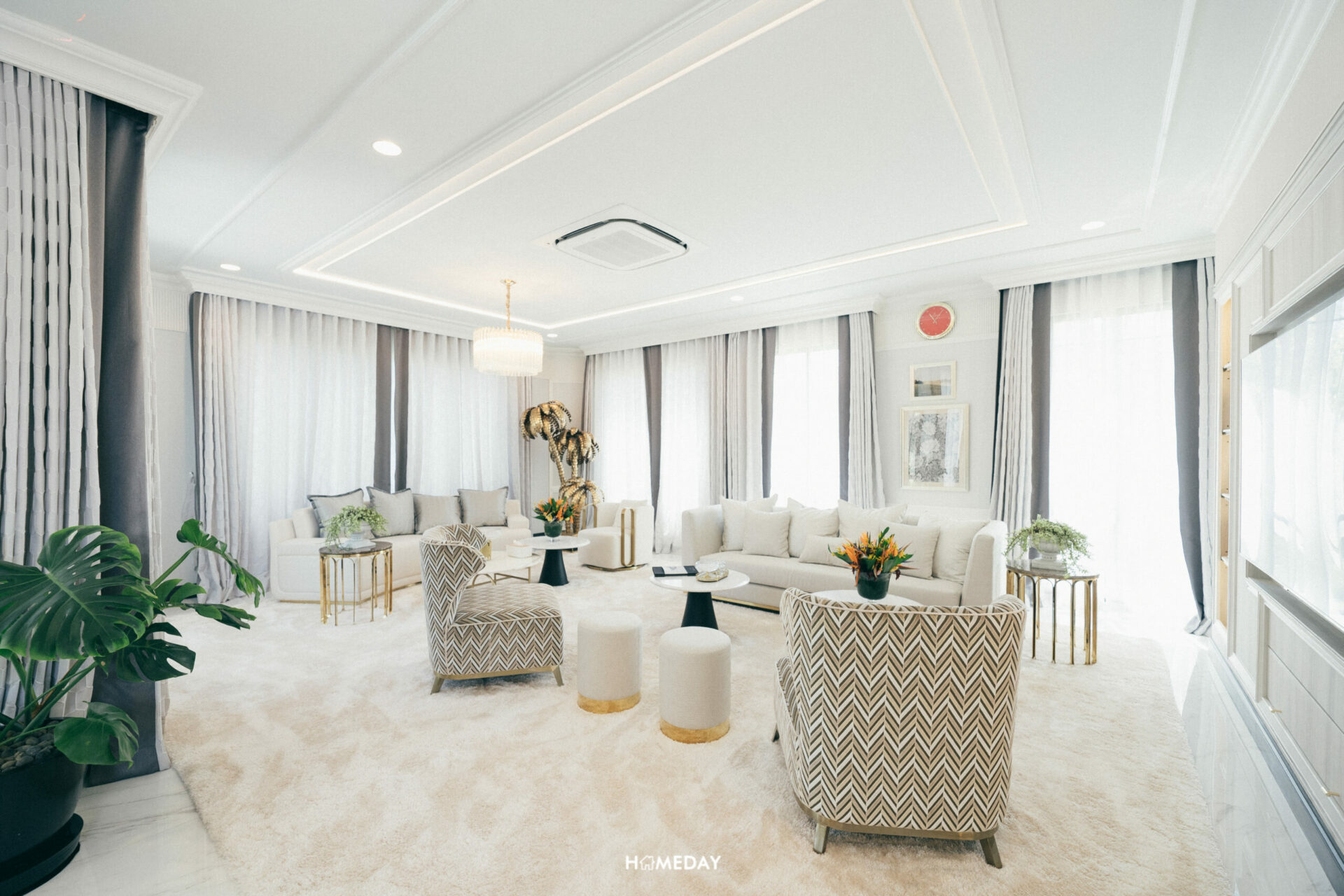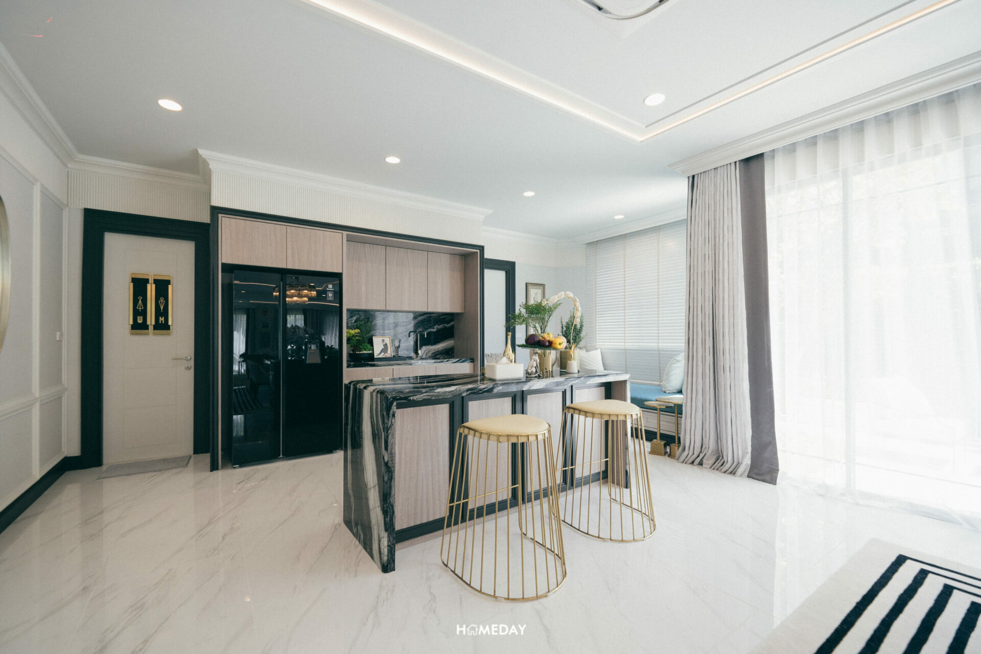 และยังรายล้อมด้วยการตกแต่งแบบ Modern Art Deco ด้วยประติมากรรมรูปปั้นสีทองแสดงถึงความงดงามและอ่อนช้อยที่ถูกออกแบบมาพิเศษสำหรับโครงการนี้เท่านั้น