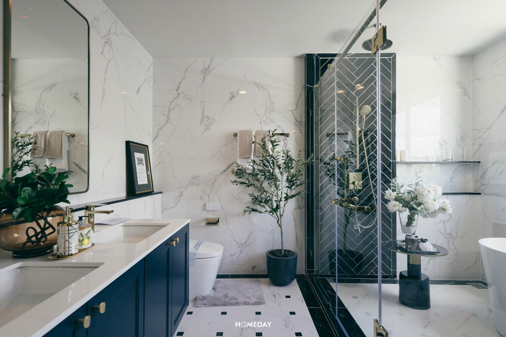 ห้องน้ำฟังก์ชันเหมือนกับแบบบ้าน René 04 เลยครับ ออกแบบการใช้งานมาสำหรับคู่รักที่อาศัยอยู่ด้วยกัน ให้สามารถใช้งานห้องน้ำพร้อม ๆ กันในช่วงเวลาเร่งด่วนได้อย่างสะดวกสบาย