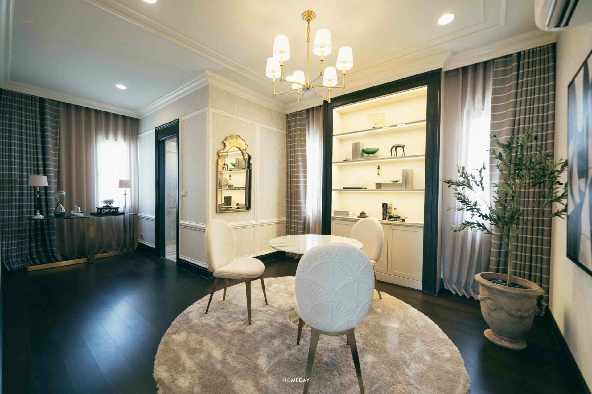 อีกฝั่งจะเป็นมุมโต๊ะกลมพร้อมเก้าอี้ ที่เราอาจมานั่งทำงานชิล ๆ, เล่นบอร์ดเกม, สอนการบ้านลูก ๆ หรือนั่งทานข้าวพร้อมรับชมภาพยนตร์เรื่องโปรดไปด้วยก็ได้ครับ