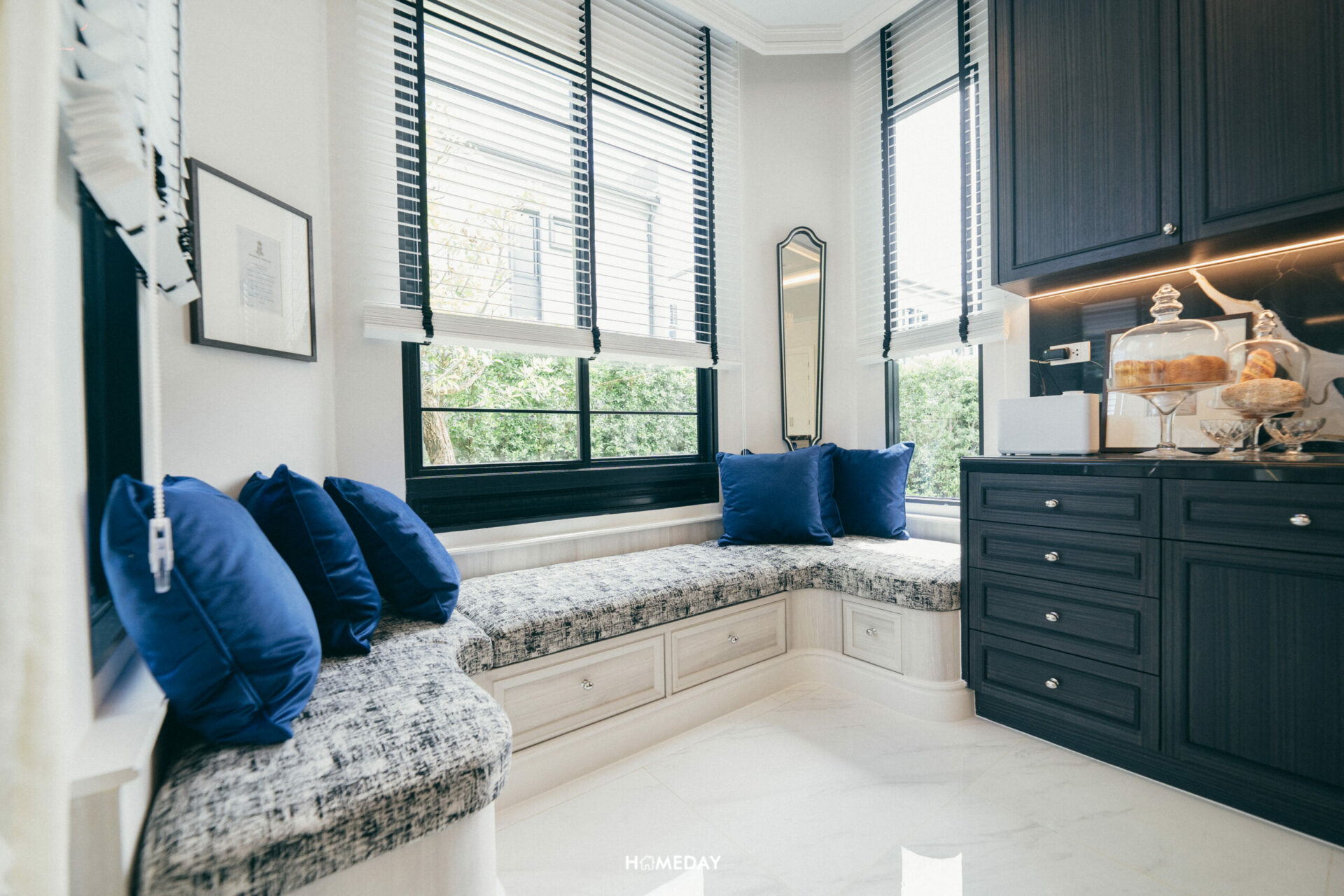 ในช่วงเวลากลางวัน ตรงนี้มีช่องแสงมาให้ 1 จุด สามารถนั่งแต่งหน้าและเลือกหยิบเสื้อผ้าได้ โดยไม่ต้องเปิดไฟเลยครับ พื้นที่รอบ ๆ หากวางตู้ไอส์แลนด์ ก็ไม่ได้คับแคบแต่อย่างใด สามารถเดินไปรอบ ๆ เปิดลิ้นชัก บานตู้ต่าง ๆ ได้อย่างไม่ติดขัด