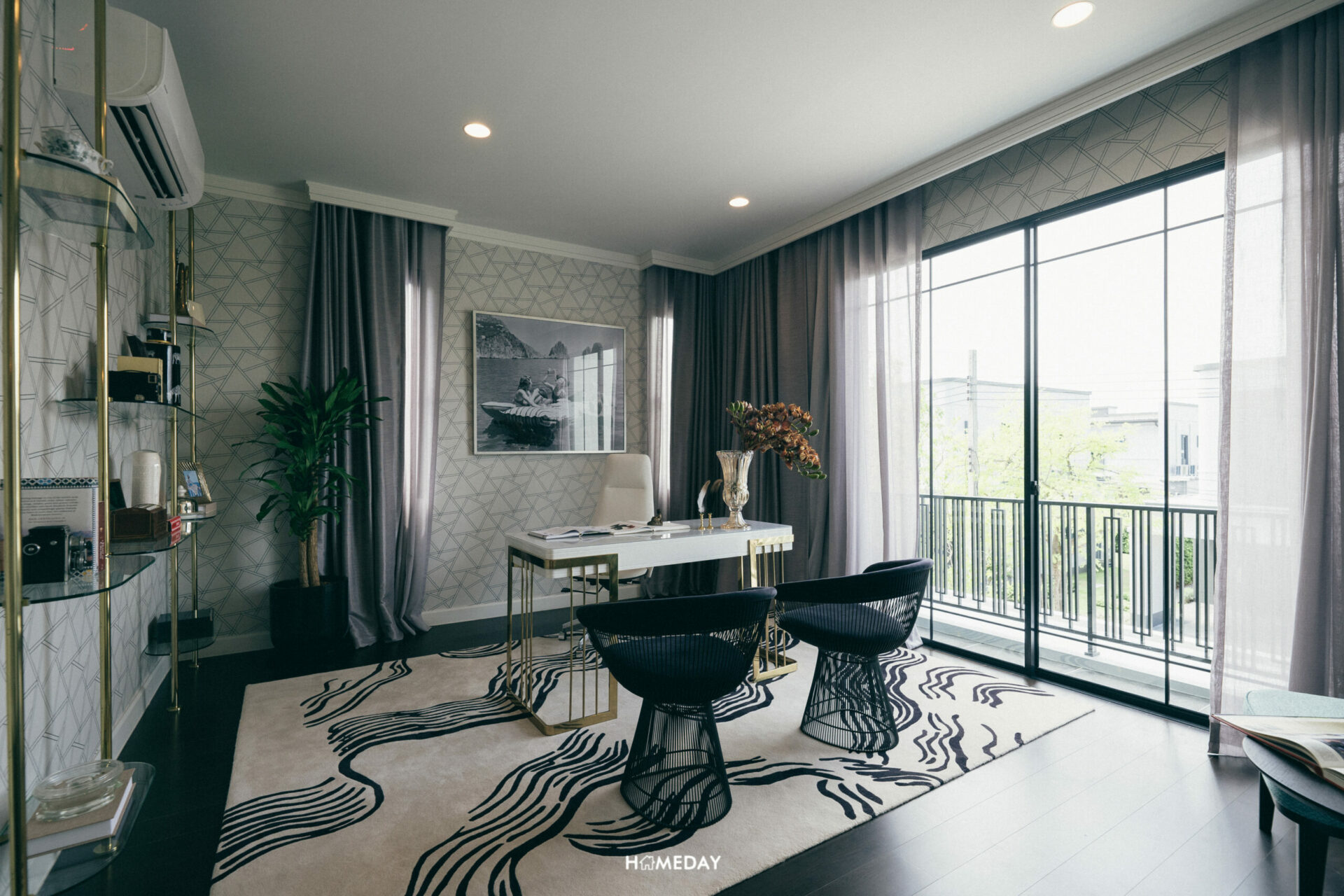 Master Bedroom ของแบบบ้านนี้ ทางโครงการออกแบบตกแต่งให้ดูเป็นห้องทำงานส่วนตัวครับ ตัวห้องอยู่ติดระเบียง มีพื้นที่ให้ใช้งานกว้างขวางมาก ๆ มาพร้อมห้องน้ำในตัวและพื้นที่สำหรับบิลต์อิน Walk-in Closet อีกด้วยครับ